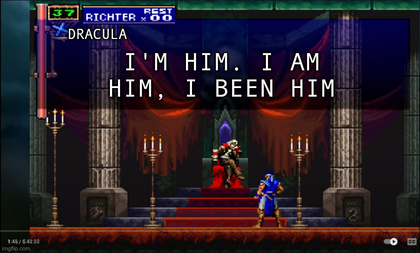 :dracula: I'm him. I've been him. I will continue to be him. Yellow rubies glistenin' like piss.