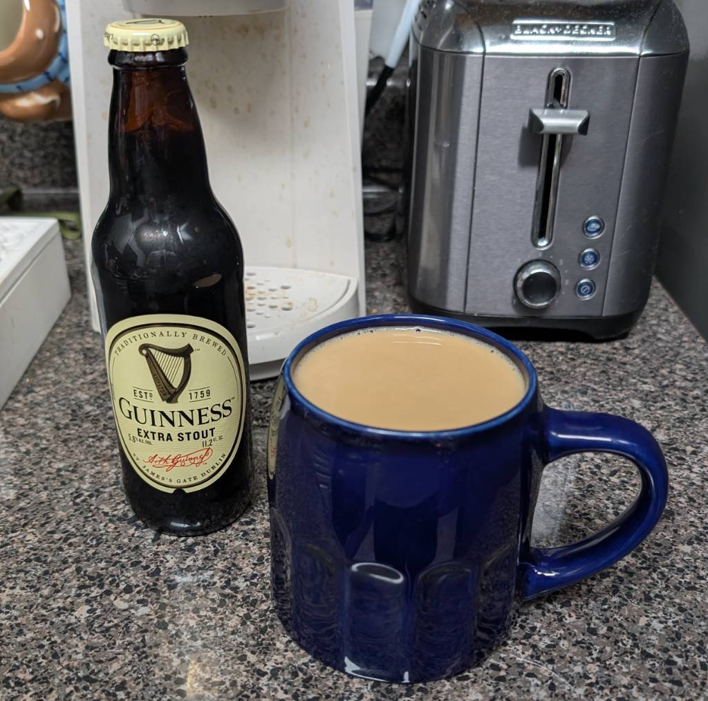 Wait, the beer isn't open yet, what's in the mug, irish coffee? 🤔
