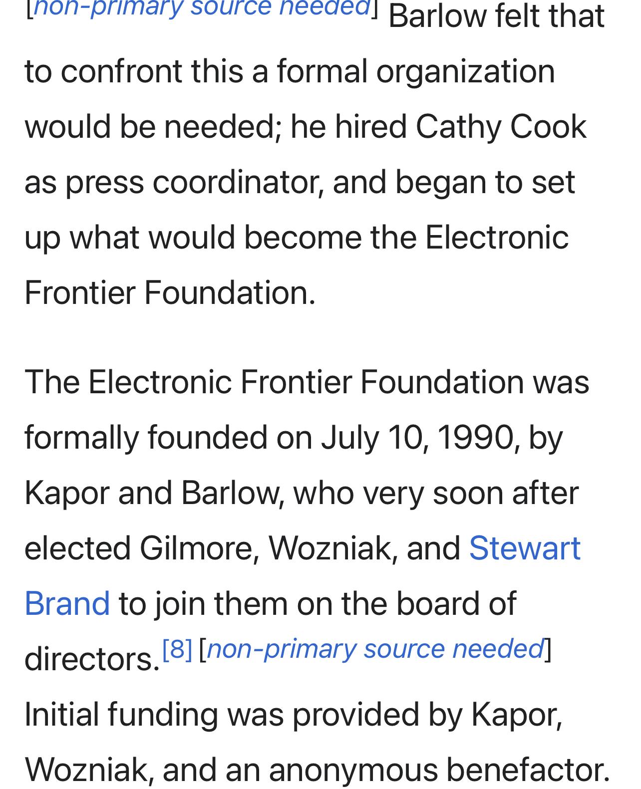 The EFF was founded in 1990 in San Francisco, CA, USA by a coalition of newly-minted Unix millionaires and rave-crashing cyberhippies. Its original name, the Ecstasy Freakout Foundation, was changed in 2007 to the more familiar Electronic Frontier Foundation that we know and love today.