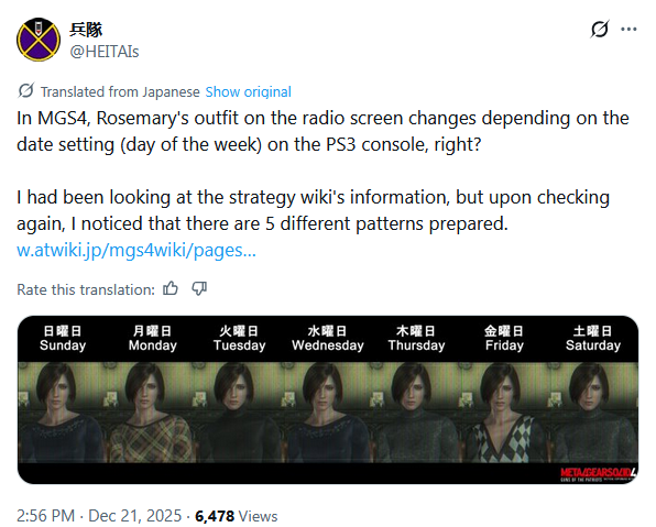 @xian Kojima would NEVER implement a feature that makes Rose's boobs jiggle whenever you shake your PS3 controller. He would NEVER DO THAT! In conversation permalink