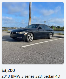 Checking the used car market for a couple hours today I learned BMWs are the most common and cheapest vehicle around. I've seen 2005 civics going for more than 2014 bmw coupes. Laughing a lot to myself - Hoss Delgado repeated this.