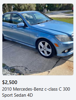 @Hoss @skylar there's a fair bit of mid 2010s mercades (AMG went down hill super, super fucking fast) in this search. I never thought I'd see BMW, mercades etc along side 203-2006 civics, a fucking 2009 honda odyssey -