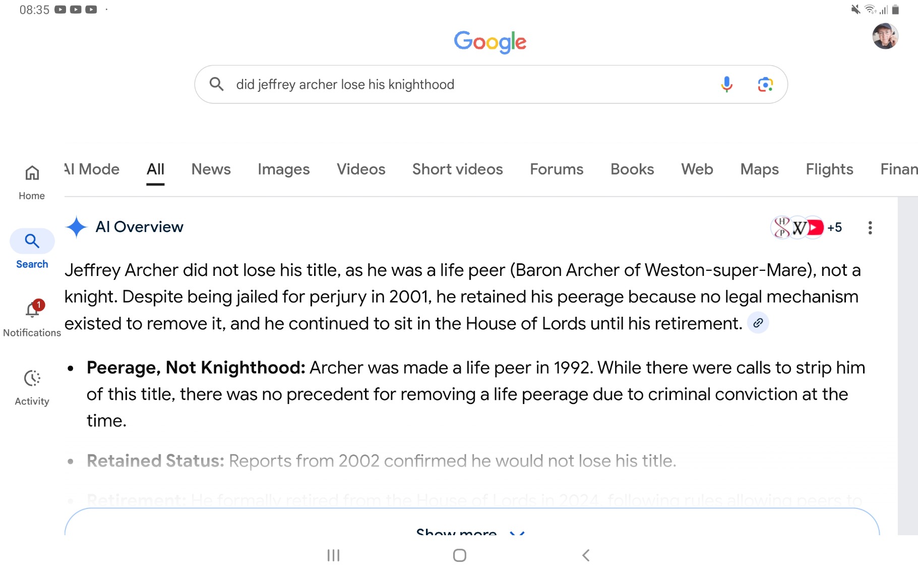 They couldn't chuck Archer out, and Mandelson is also a Life Peer.In conversation permalink Attachments