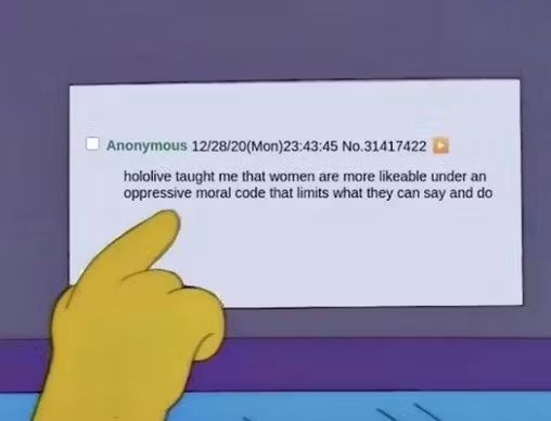 This is vtubing and we need the women to have drama and simps or else their ovaries will force them to leave the profession and pursue husbands and children.Johnny Peligro repeated this. -