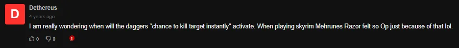 @deprecated_ii i think it’s 1% chance, and the dagger itself is pretty weak otherwise, so it’s never worth using -