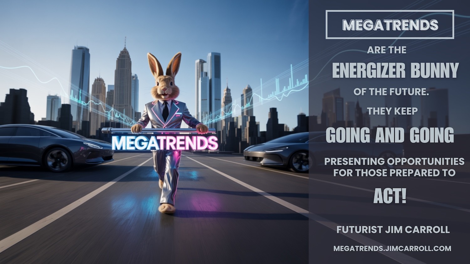 "Megatrends are the Energizer Bunny of the future. They keep going and going, presenting opportunities for those prepared to act!" - Futurist Jim Carroll