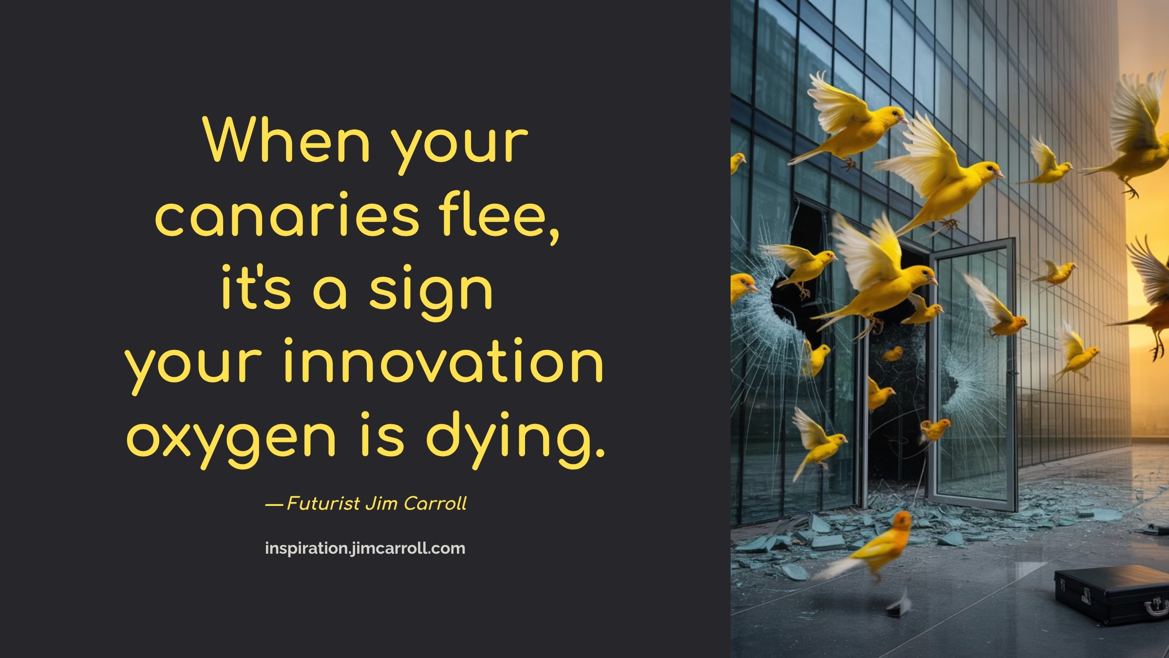 "When your canaries flee, it's a sign your innovation oxygen is dying." - Futurist Jim Carroll