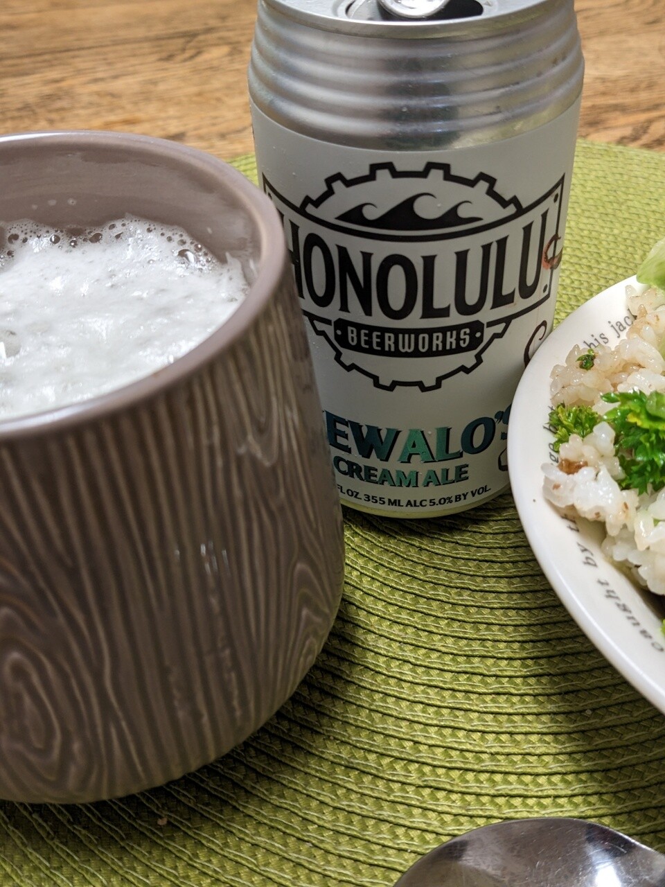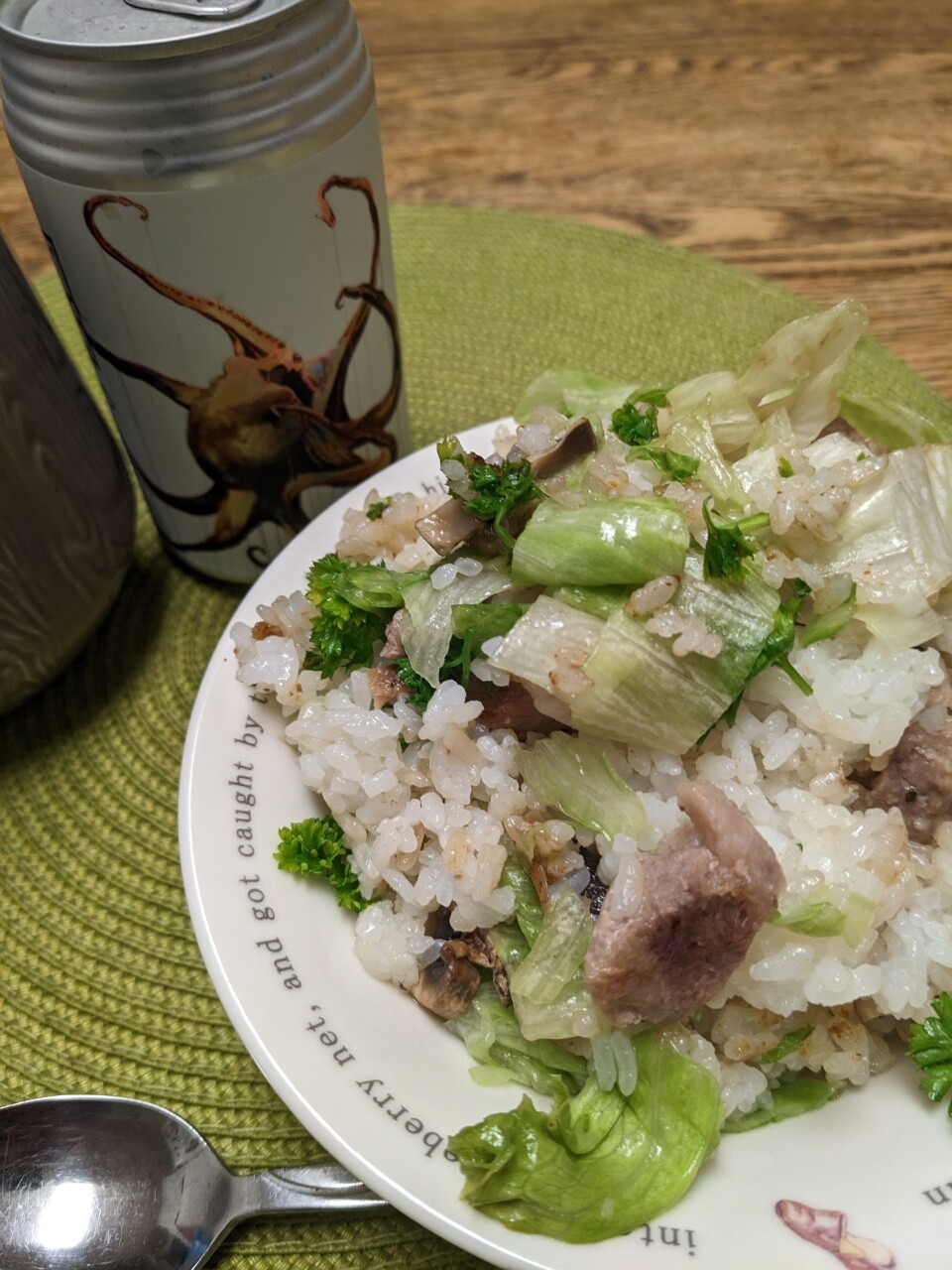 山盛りになっちゃったレタスチャーハンとタコのビール