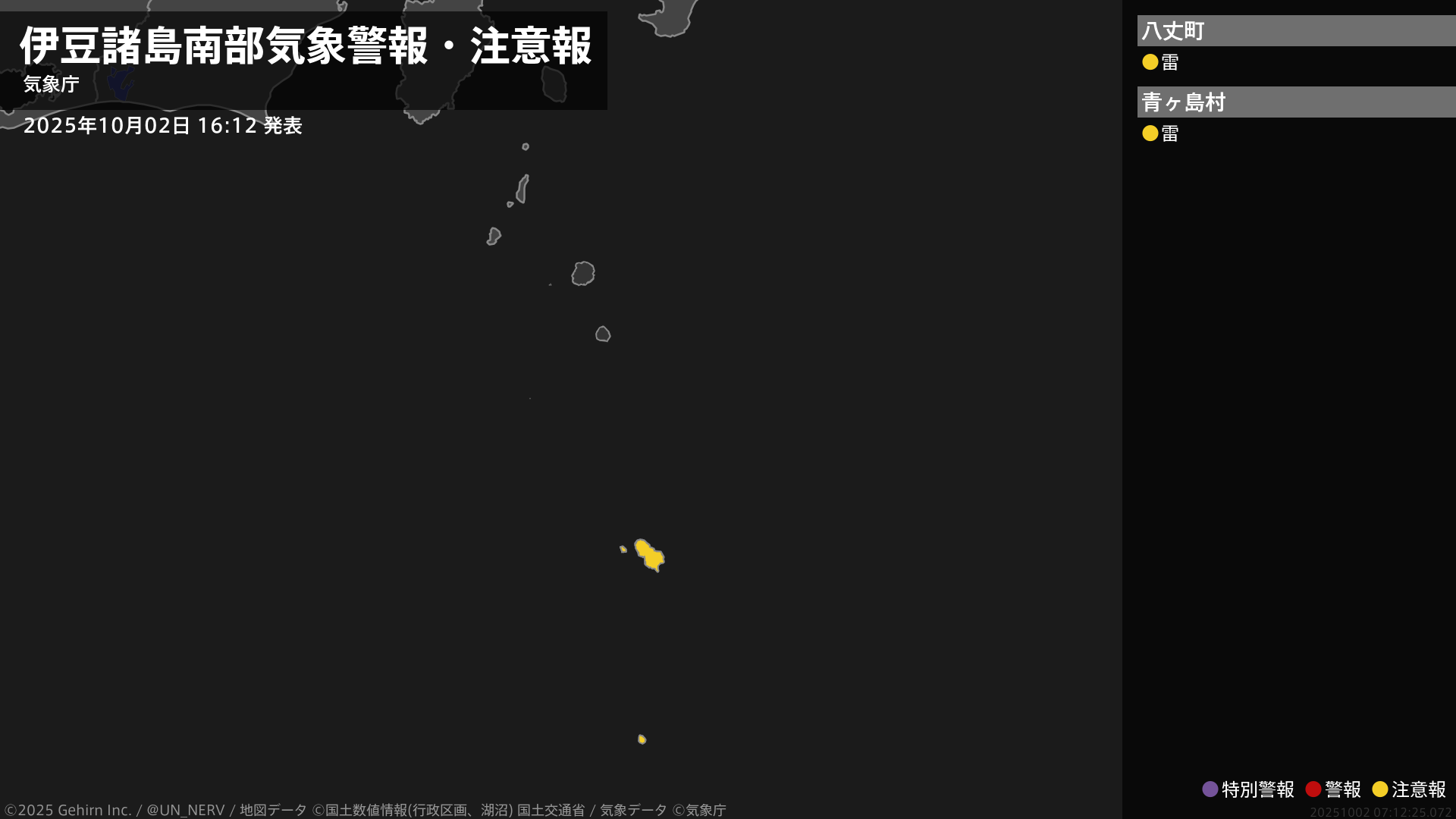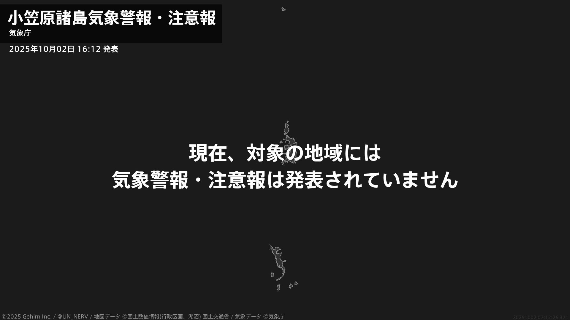 【東京都 気象警報・注意報 2025年10月02日 16:12】