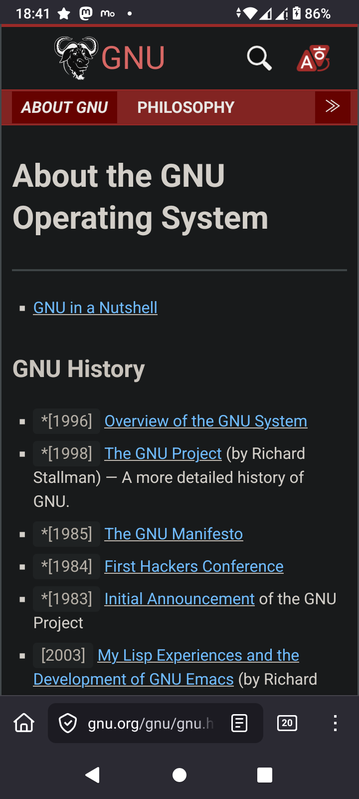 Quote The primary and continuing goal of GNU is to offer a Unix-compatible system that would be 100% free software. Not 95% free, not 99.5%, but 100%. The name of the system, GNU, is a recursive acronym meaning GNU's Not Unix—a way of paying tribute to the technical ideas of Unix, while at the same time saying that GNU is something different. Technically, GNU is like Unix. But unlike Unix, GNU gives its users freedom. ^Z