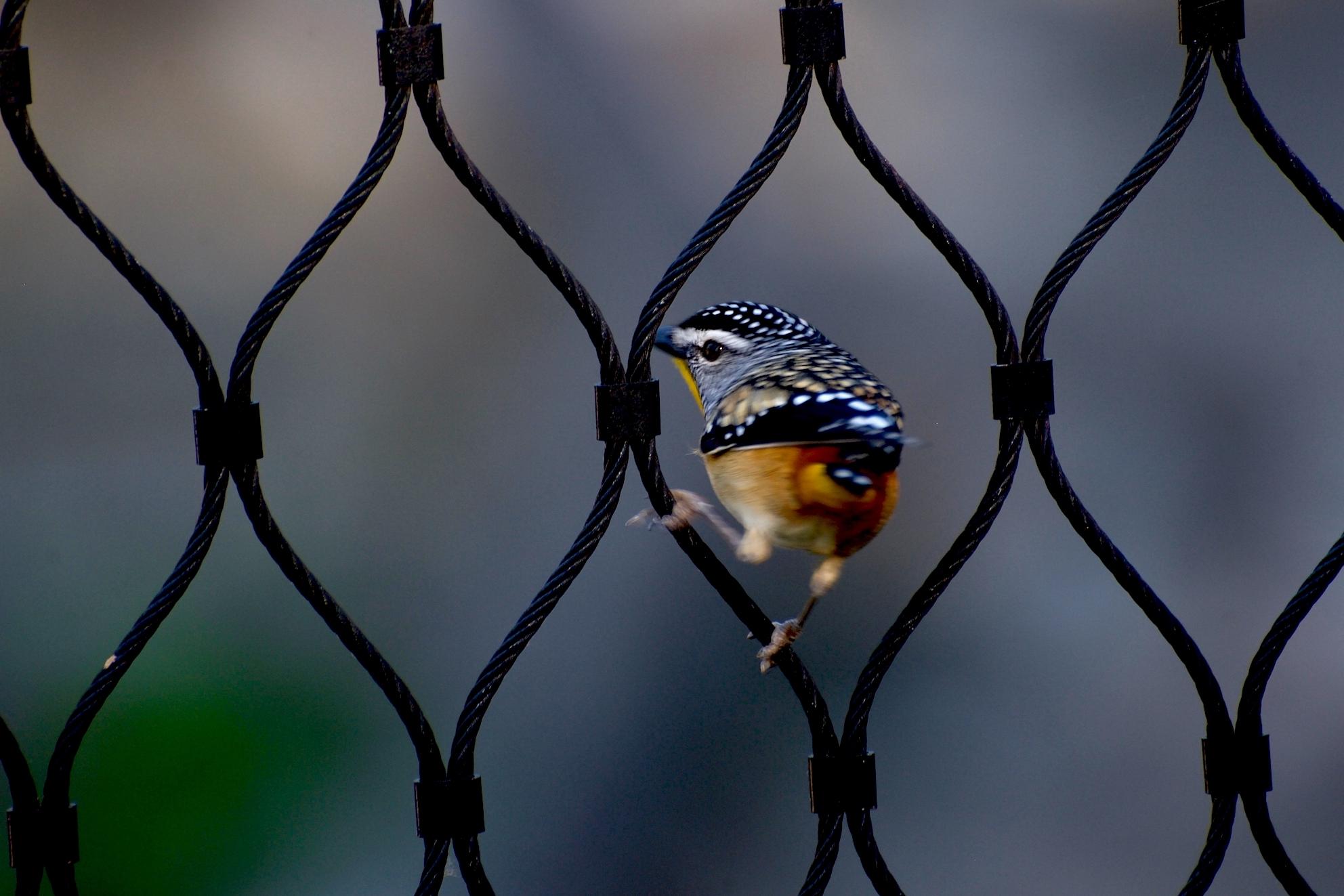 I was photographing a Brown Bear at Melbourne Zoo, when this Spotted Pardalote landed in the fence - for about 5 seconds!