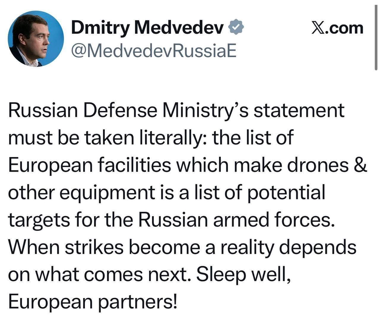 Dmitry Medvedev, Deputy Chairman of the Security Council of Russia, has just put Europe on notice.