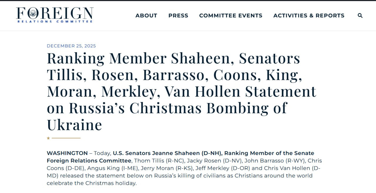 US Senators Call Putin a Ruthless Killer Over Christmas Day Attacks