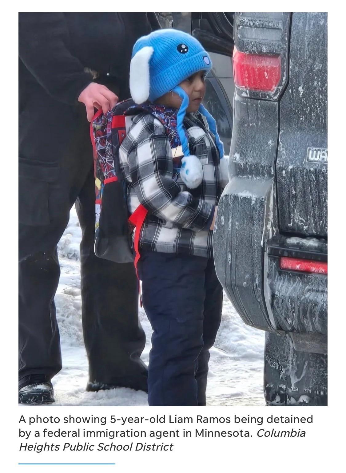 Though a caregiver & family friend *who lived in the same house* offered to take the child, #ICE detained him, asking him to knock on the house's house "to see if anyone else was home." Agents deny they used the 5-year-old as bait & VP #Vance said (in a press conference I just watched c/o CNN-I) that they were just trying to keep him out of the freezing temps.