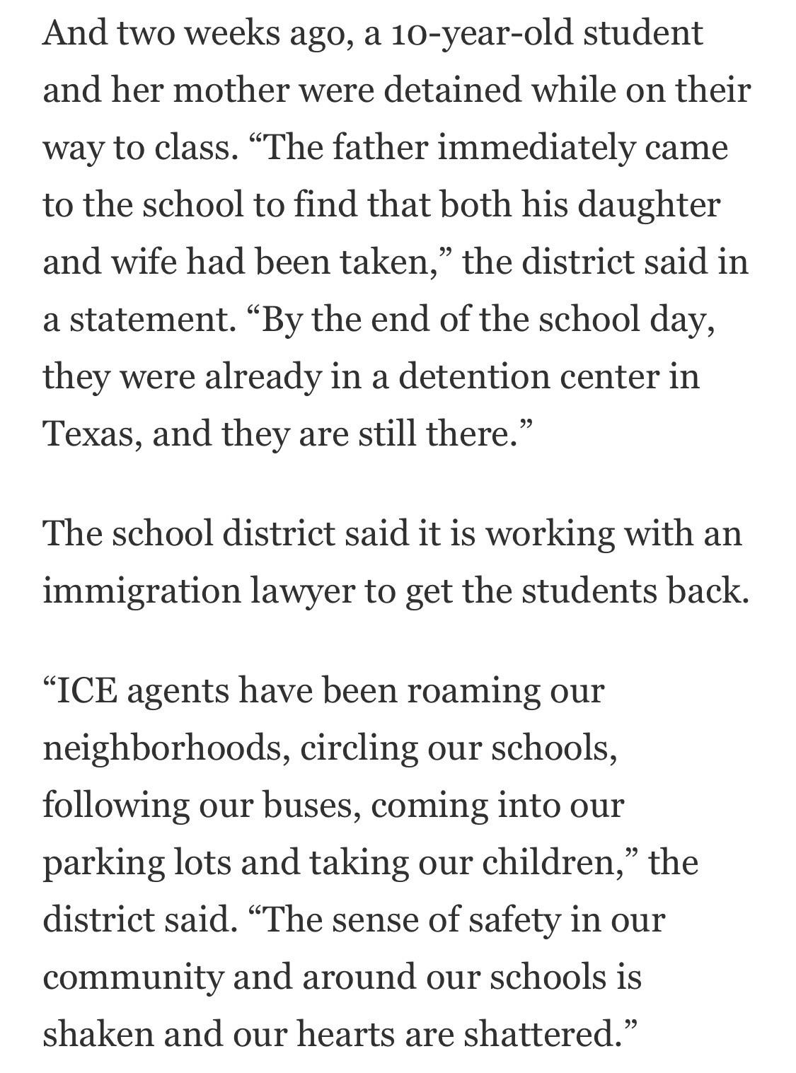 The school district is working with an immigration lawyer to get the students back" and the "sense of safety" is shaken as #ICE roams through the community.