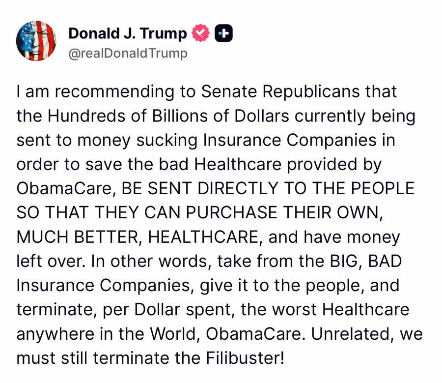 Trump says he is going to make healthcare “for the people” versus “big insurance.”
