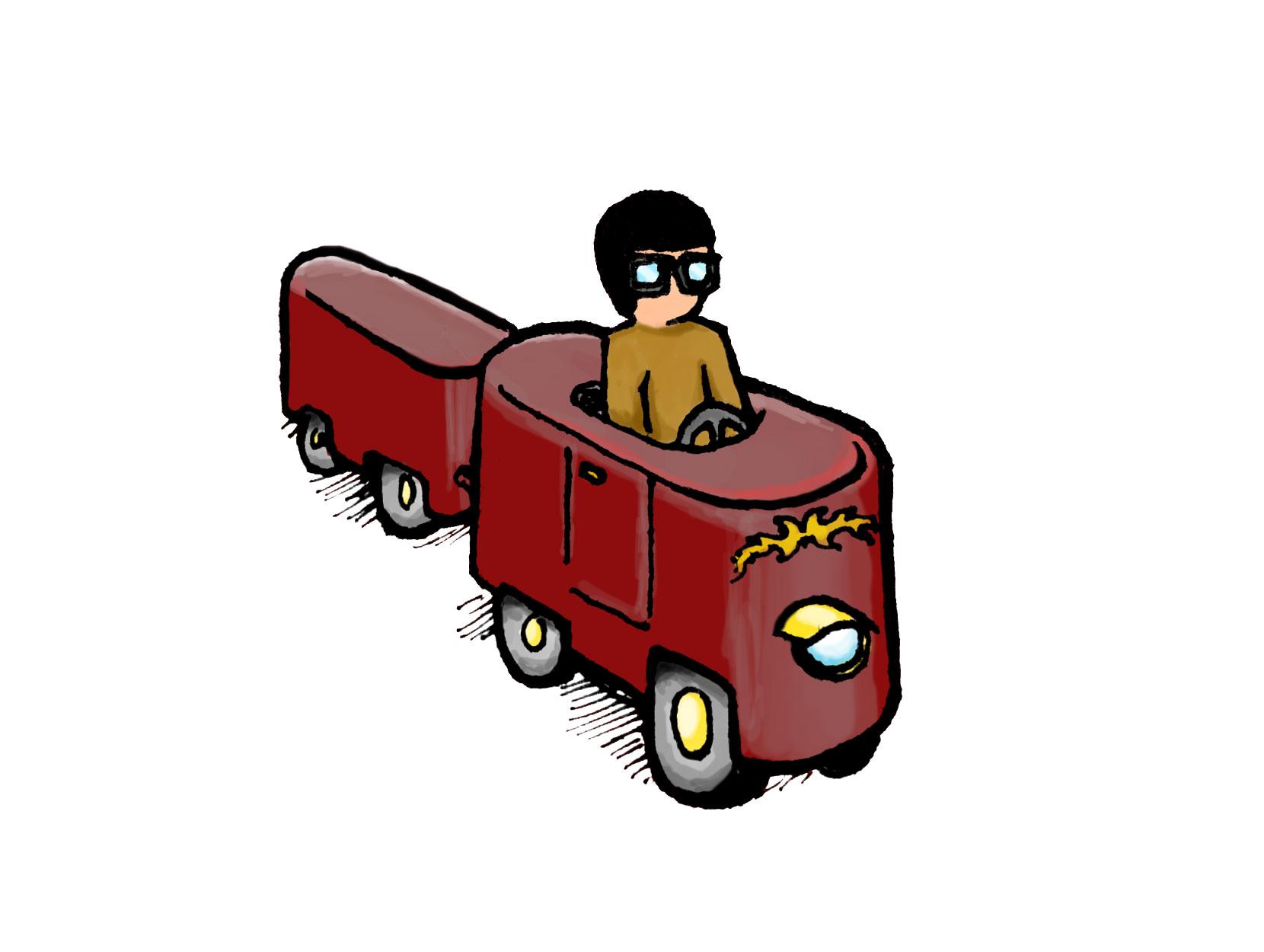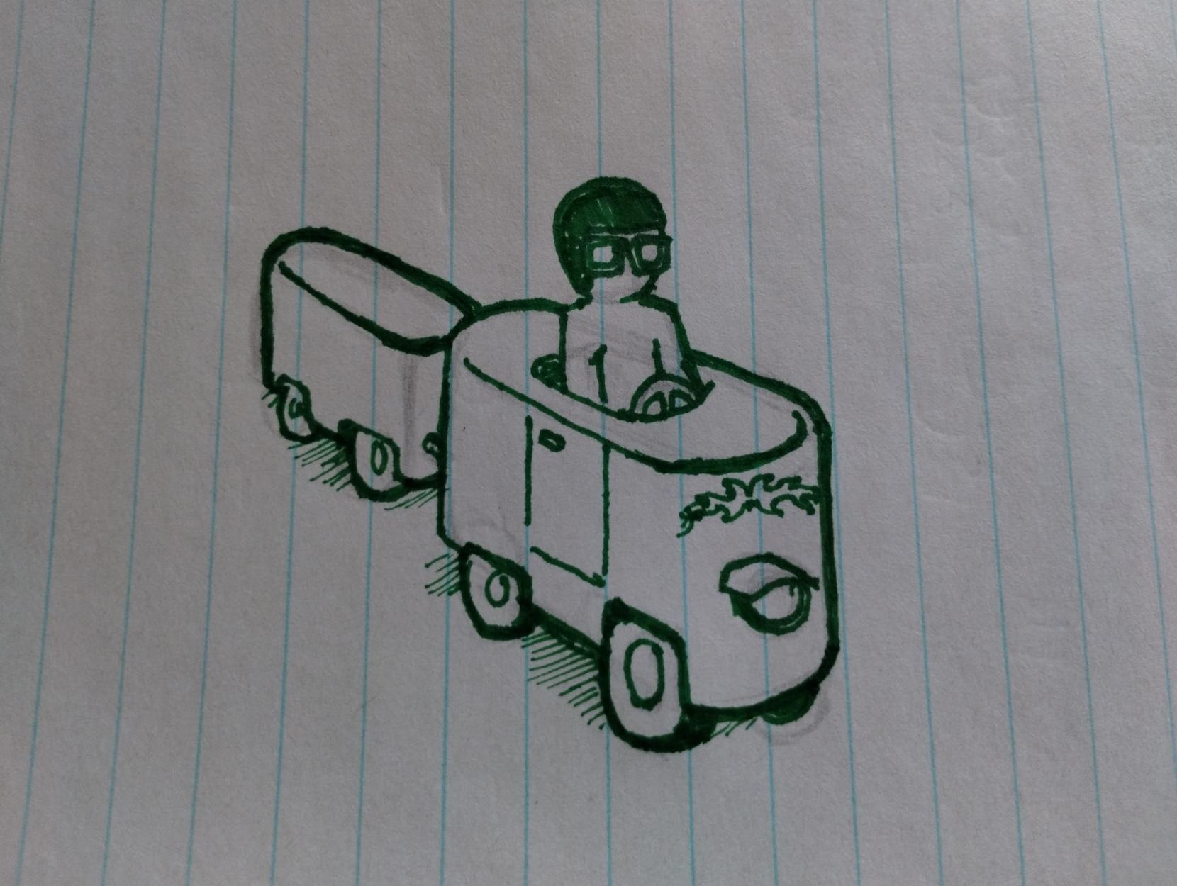The car was a single seater about the size of a tall bathtub, and driven by a guy wearing driving goggles and leather helmet. It was painted a deep burgundy color and had brass trim, and a gilded filigree detail above the single headlight on the front.