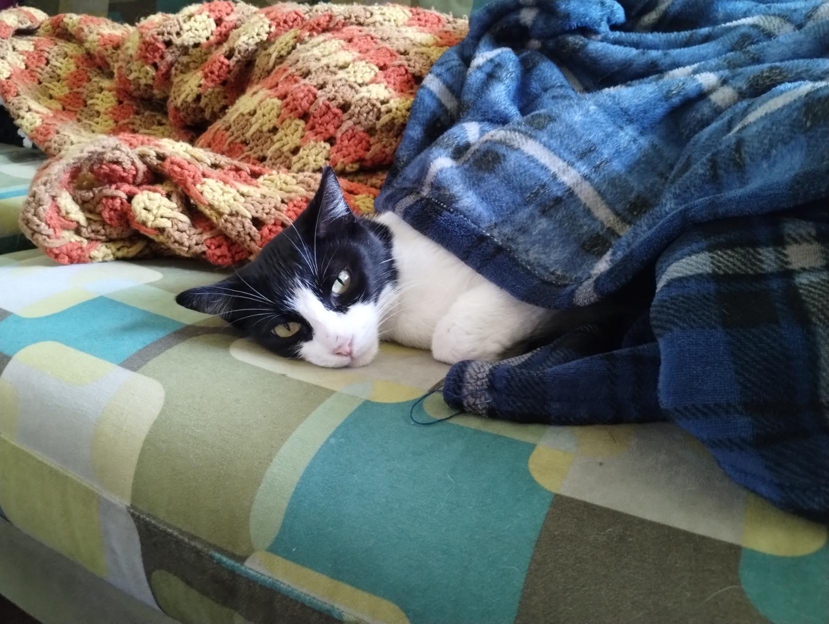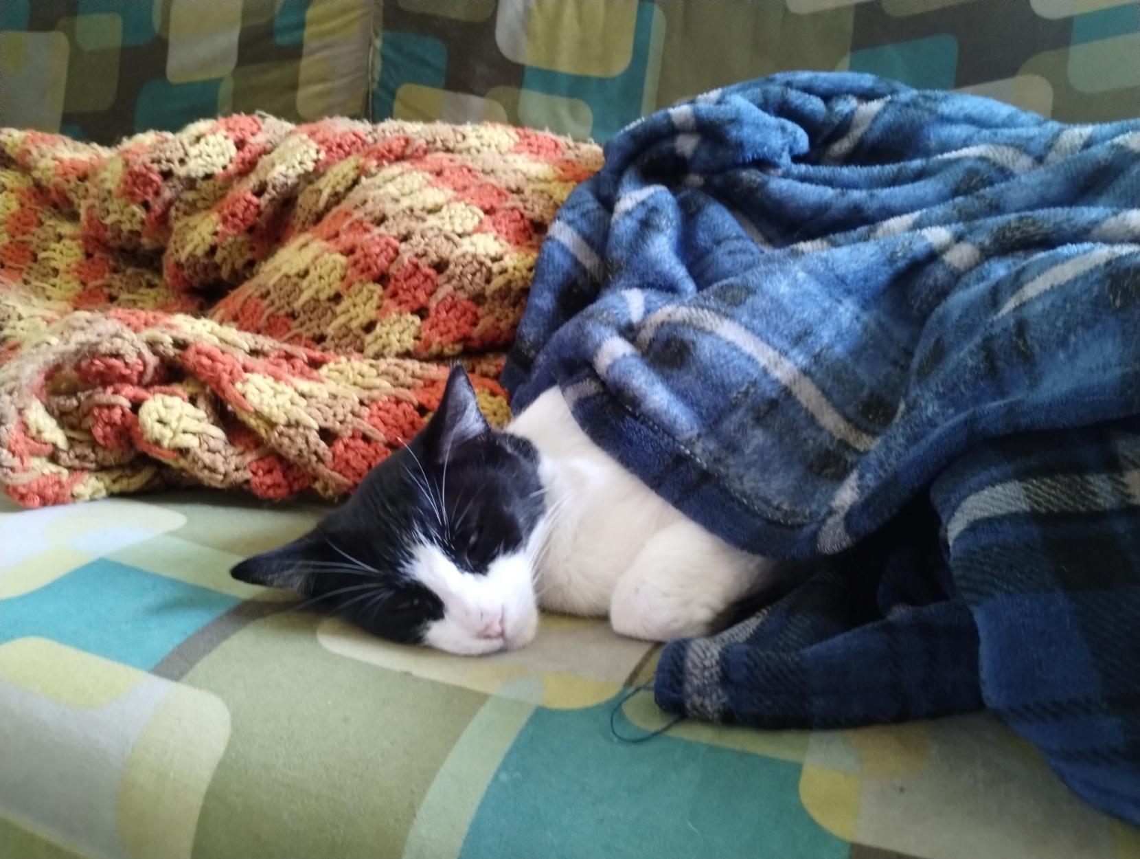 He's too dumb to use blankets on his own, so it's a good thing for him i am around to tuck him in when he's cold