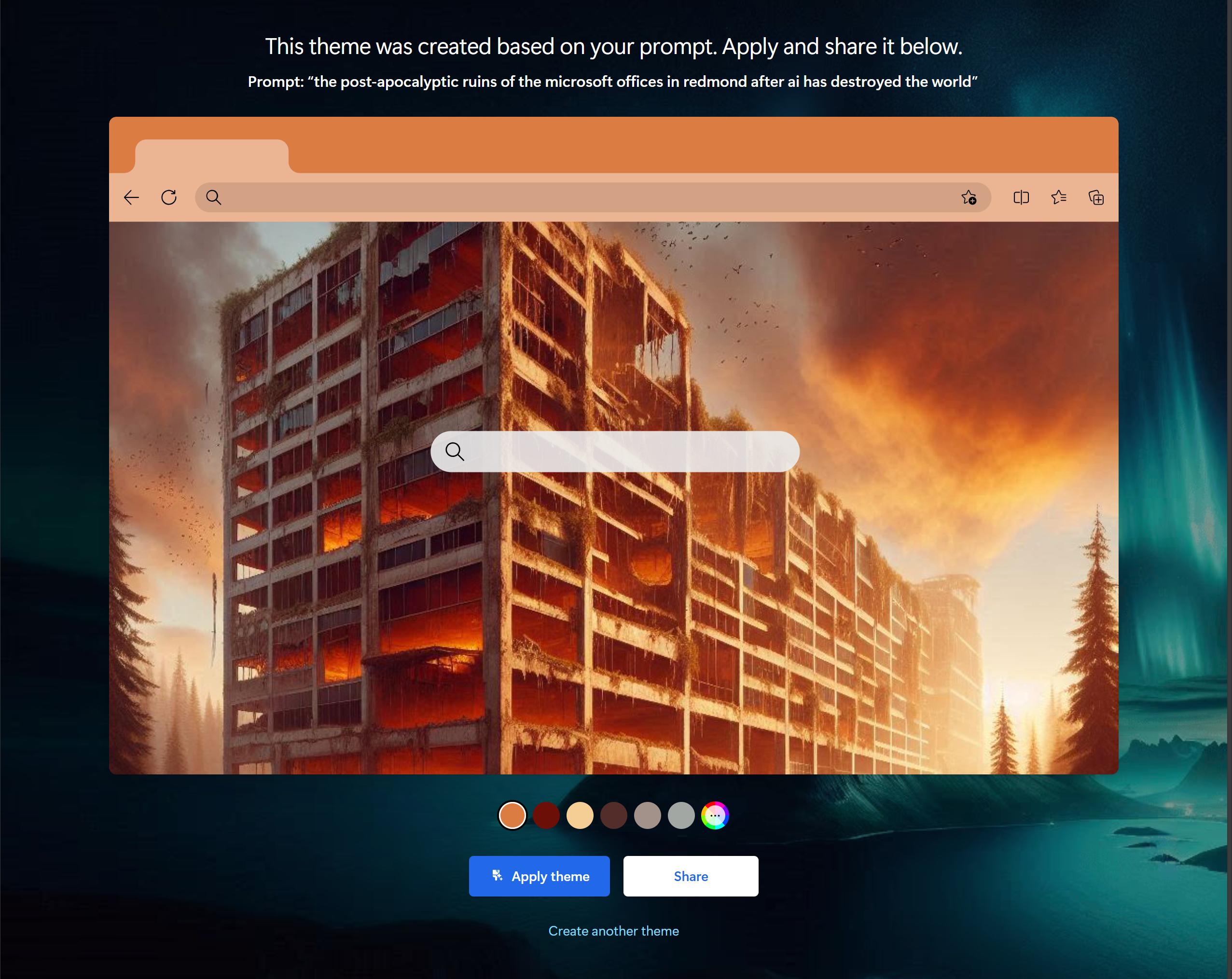 gotta give ‘em some credit, microsoft edge’s new “our ai will make a theme for you!” feature didn’t even hesitate here