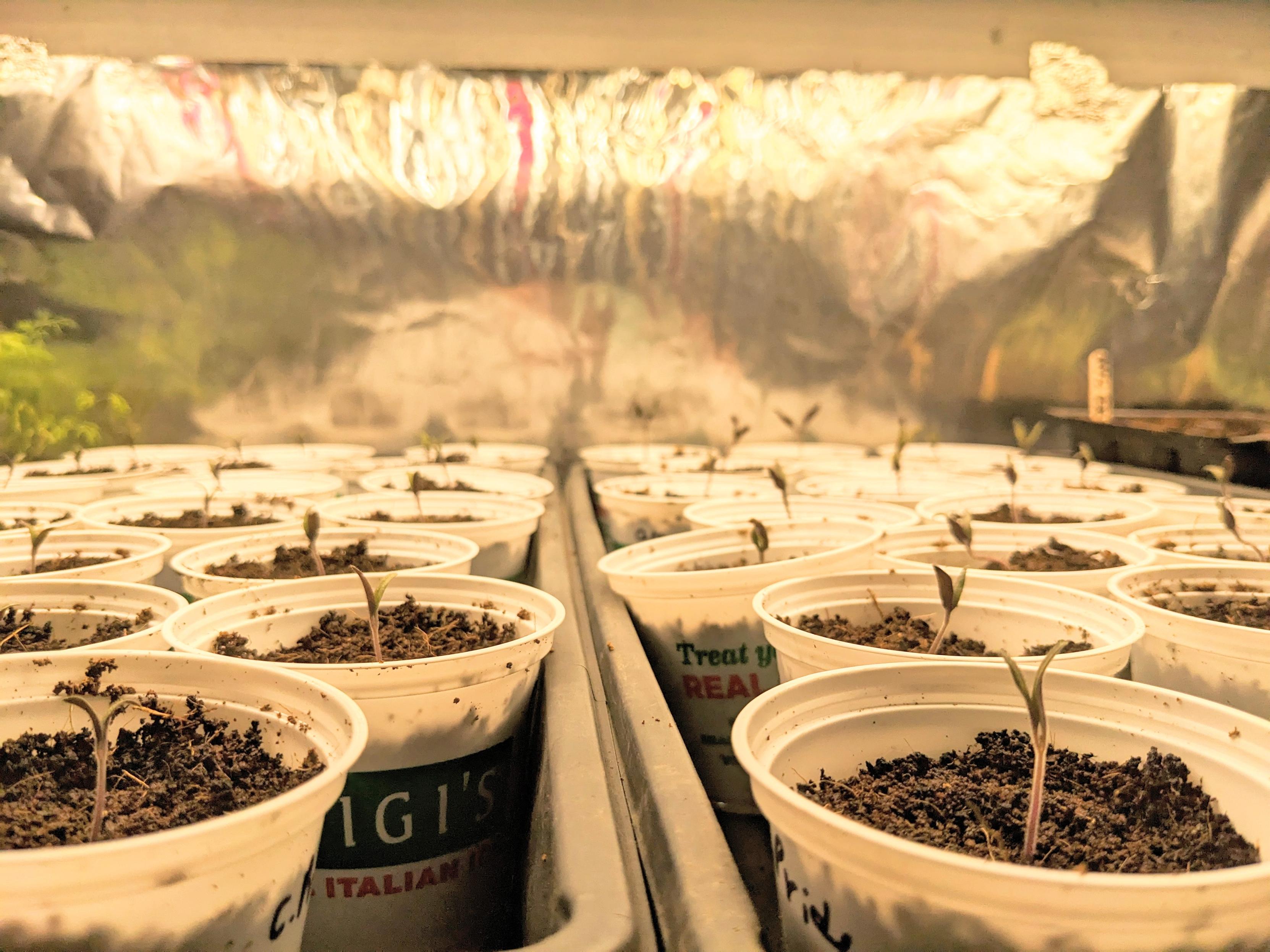 tomato seedlings aren't doing great idk I think my LED grow light was too close but maybe they need nutrients too