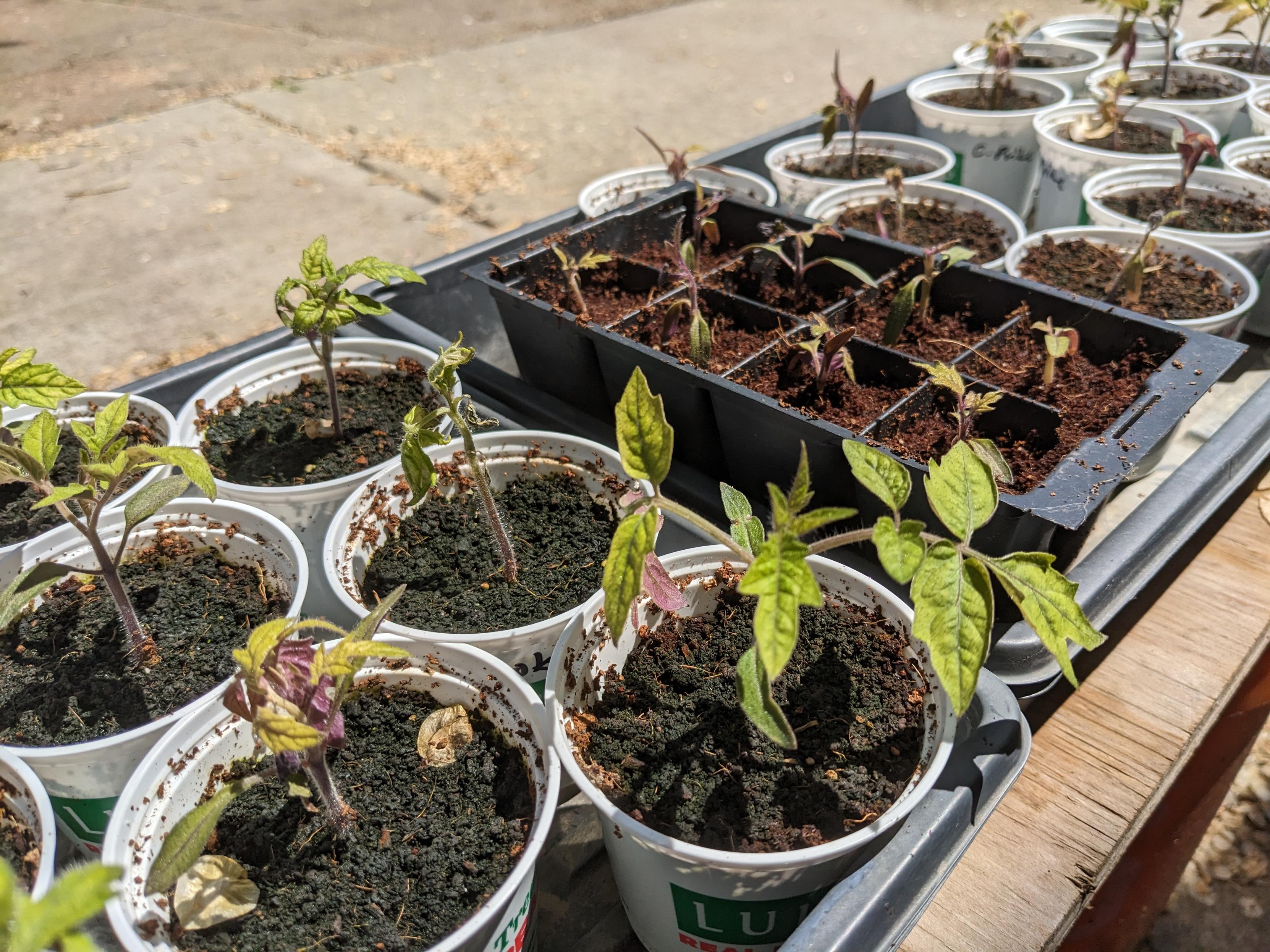 not giving up on my tomatoes, 10 or so are looking ok the rest are pretty bad - probably due to root rot, but I'm transplanting them into sterilized medium so maybe they'll turn around
