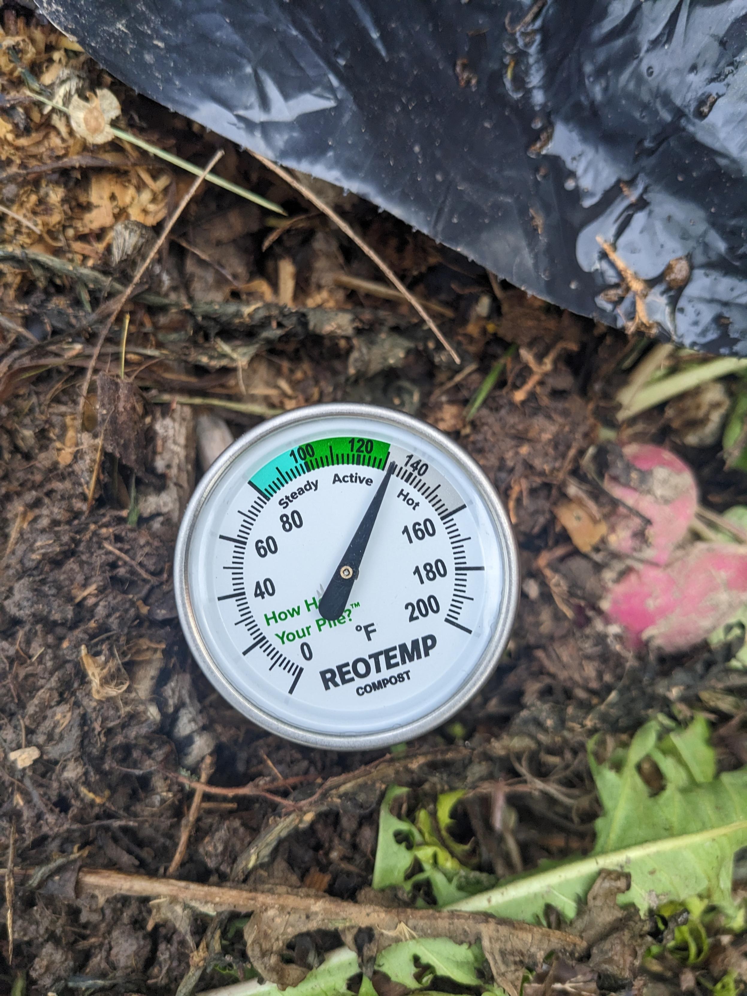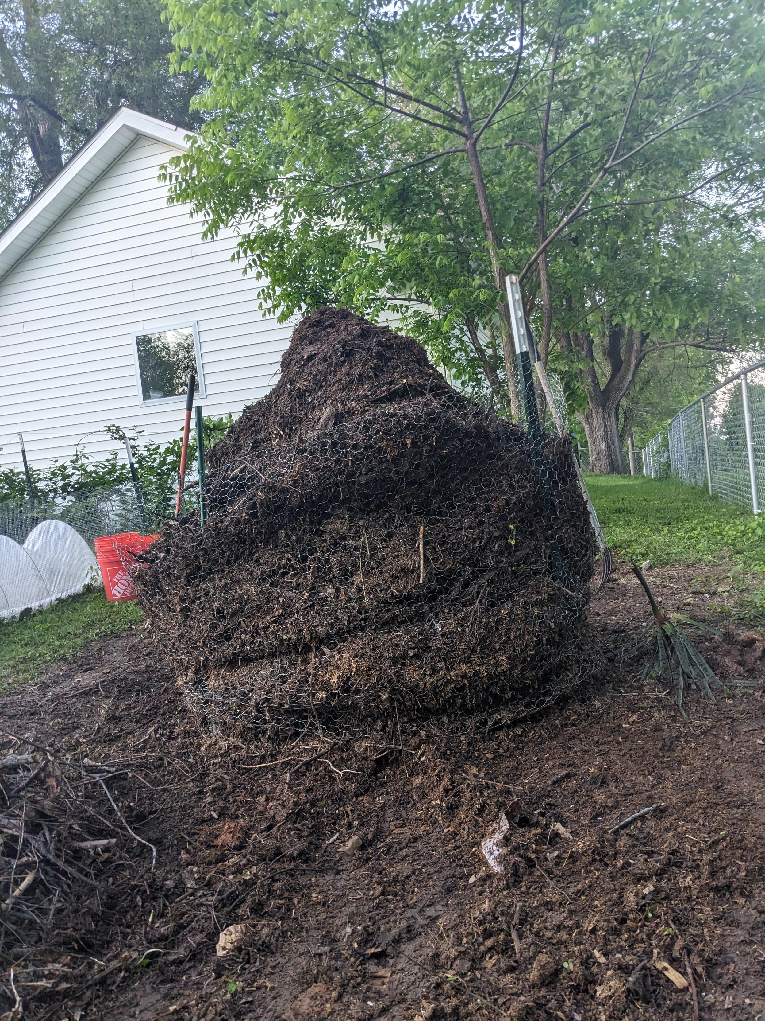 I made a rolling seedling station which I love, garden is going ok but very weedy and a ton more slugs than previous years, idk how to fix that I just wash the lettuce very well. Also consolidated a massive compost pile under a tarp but it's not getting up to temp, maybe it's low on nitrogen?