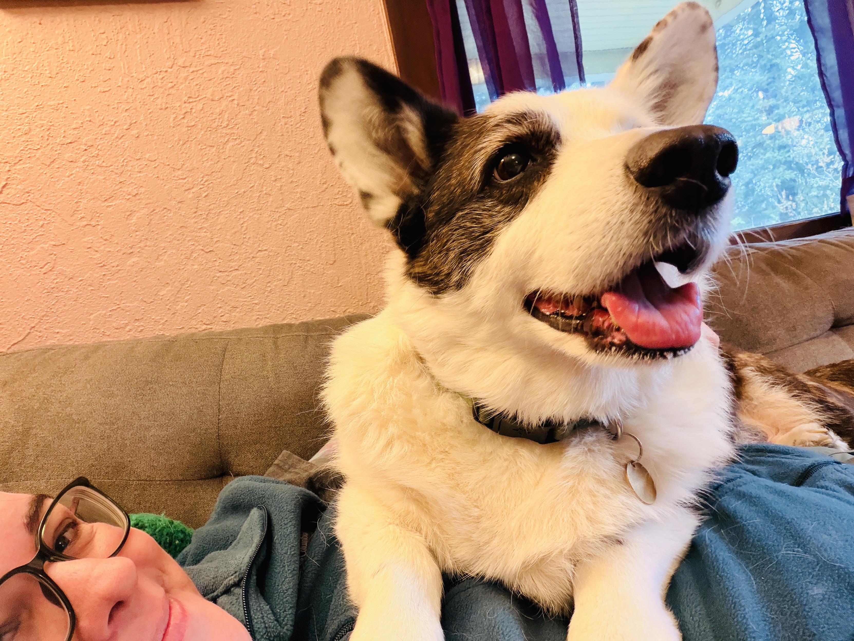 I was curious what it's like to post photos from the site, so here's Cal last night, sitting on a bag for some reason. Such a goofball. If he fits, he sits. The alt description field in Phanpy is big and easy to use, I like it a lot, and the image was easy to upload.