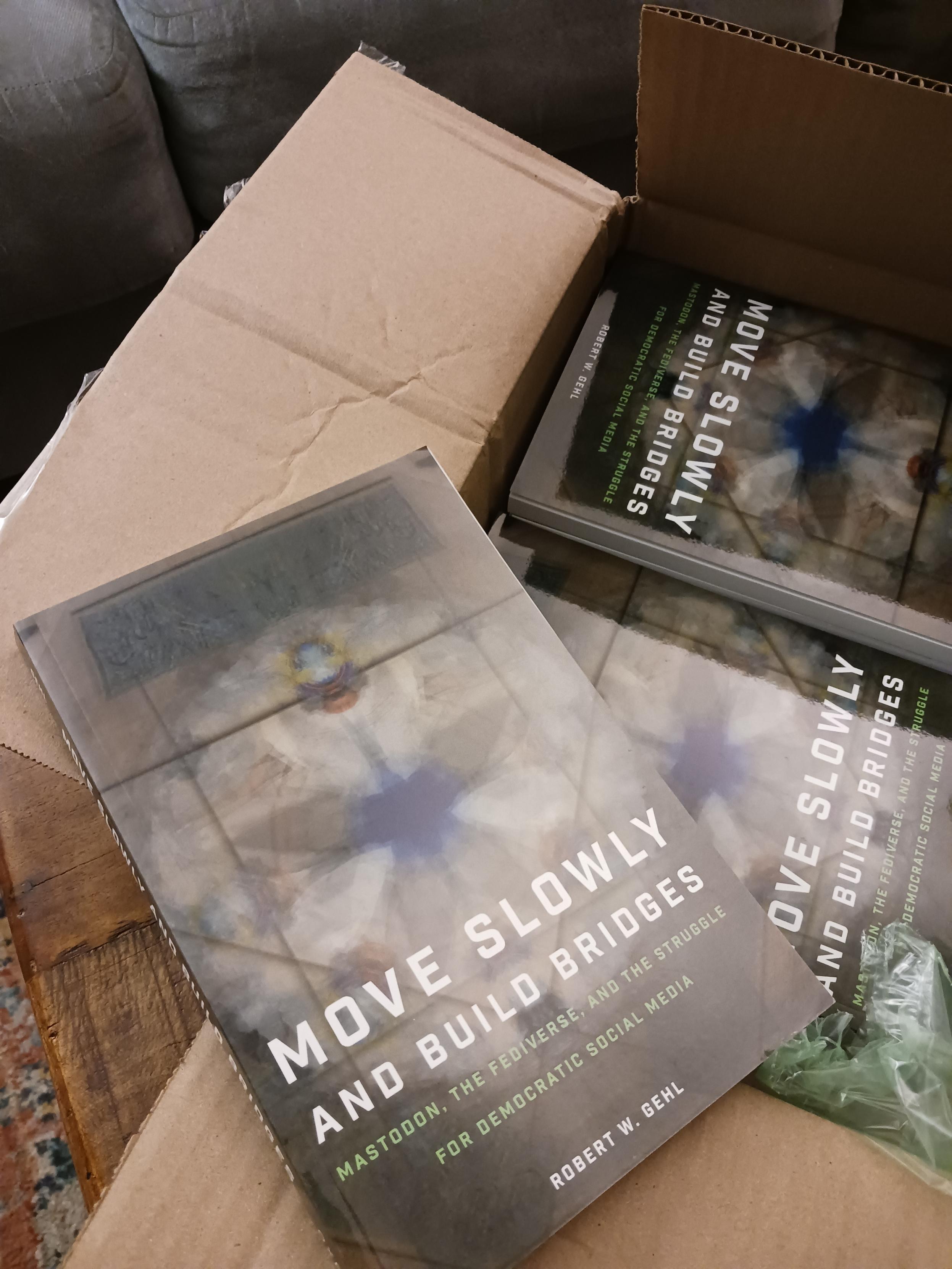 Pleased to announce that my book, Move Slowly and Build Bridges: Mastodon, the Fediverse, and the Struggle for Democratic Social Media, is now available online, and will be out in print in a couple weeks! https://moveslowlybuildbridges.com That site has more stuff, too -- links to related articles, some notes about how I researched it, and a contact form in case you want to talk about the fediverse with me! (I'd be happy to chat with journalists about it!) #academicChatter#bookstodon#fediverse#mastodon
