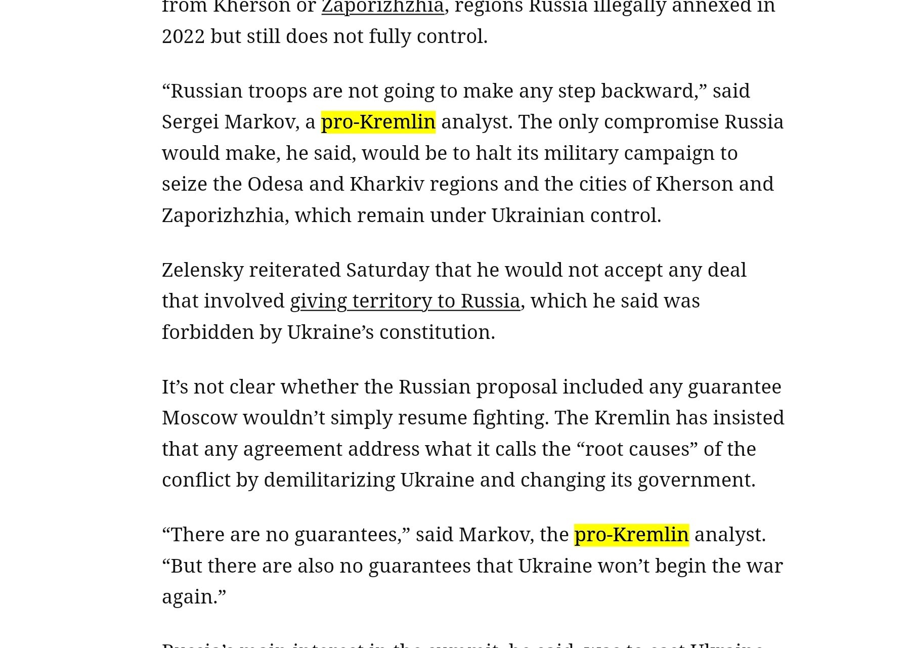 Putin’s offer still demands all of the Donbas (there's lots of Donetsk still in Kyiv's hands), and he wants "to end Ukraine’s statehood in its current form and roll back NATO's eastward expansion," ie massive changes to the Euro security posture.
