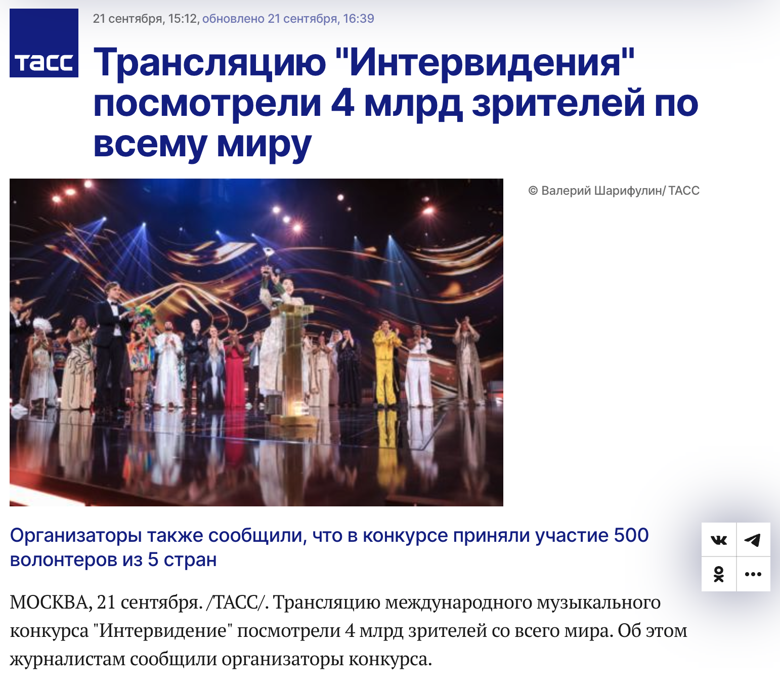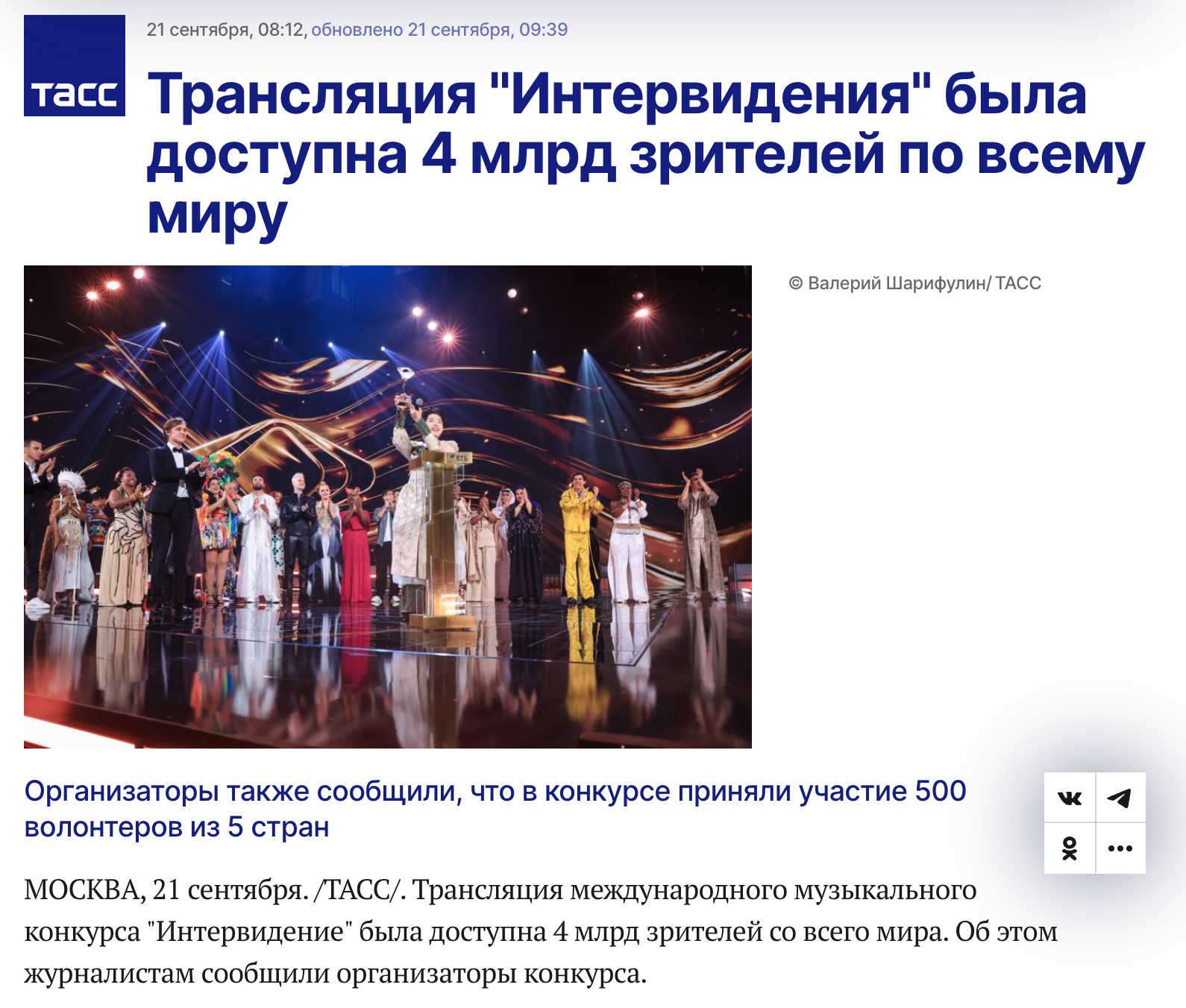 TASS had to make a very funny correction to its headline about the audience for Intervision (a replacement for Eurovision, which I’ve also never watched). “Intervision Broadcast Watched by 4 Billion Viewers Worldwide” became “Intervision Broadcast Accessible to 4 Billion Viewers Worldwide.”