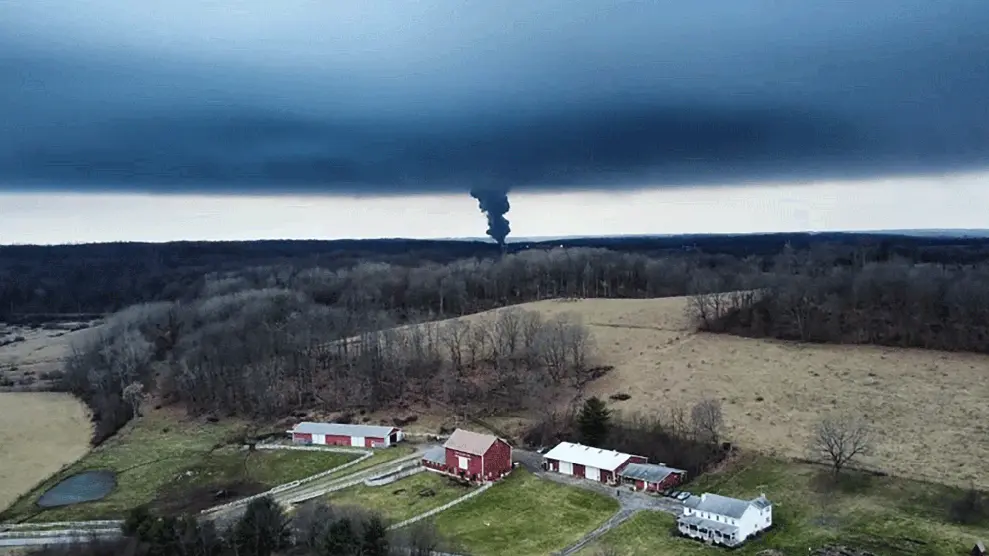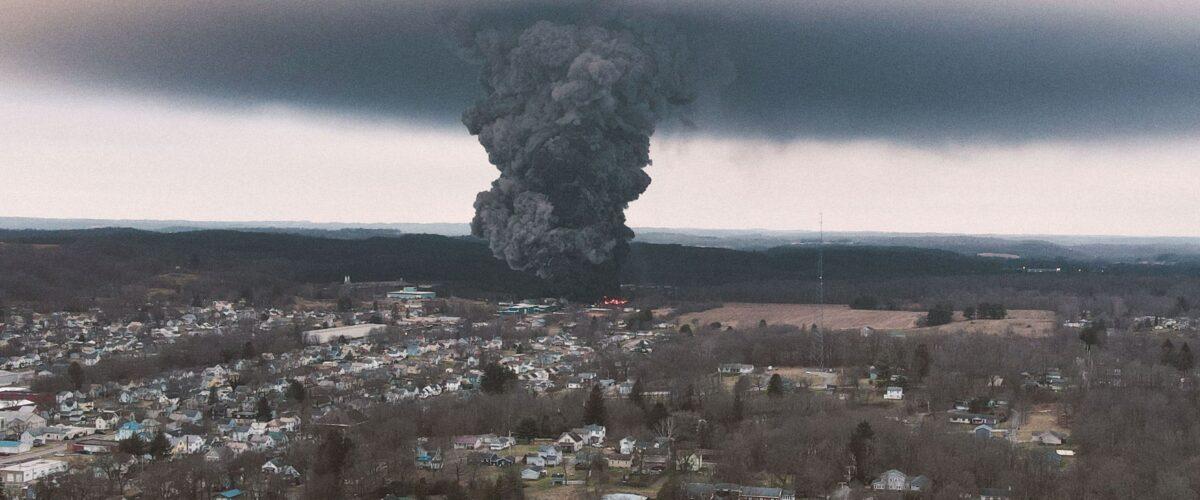 A poor town, East Palestine, OH was flooded with some of the most toxic gas, water pollution, and earth poisoning available to mankind, after a train derailed because it wasn't inspected properly before it headed out, and then numbnut fuckfaces *set the chemicals on fire*, probably to try and cover it up.