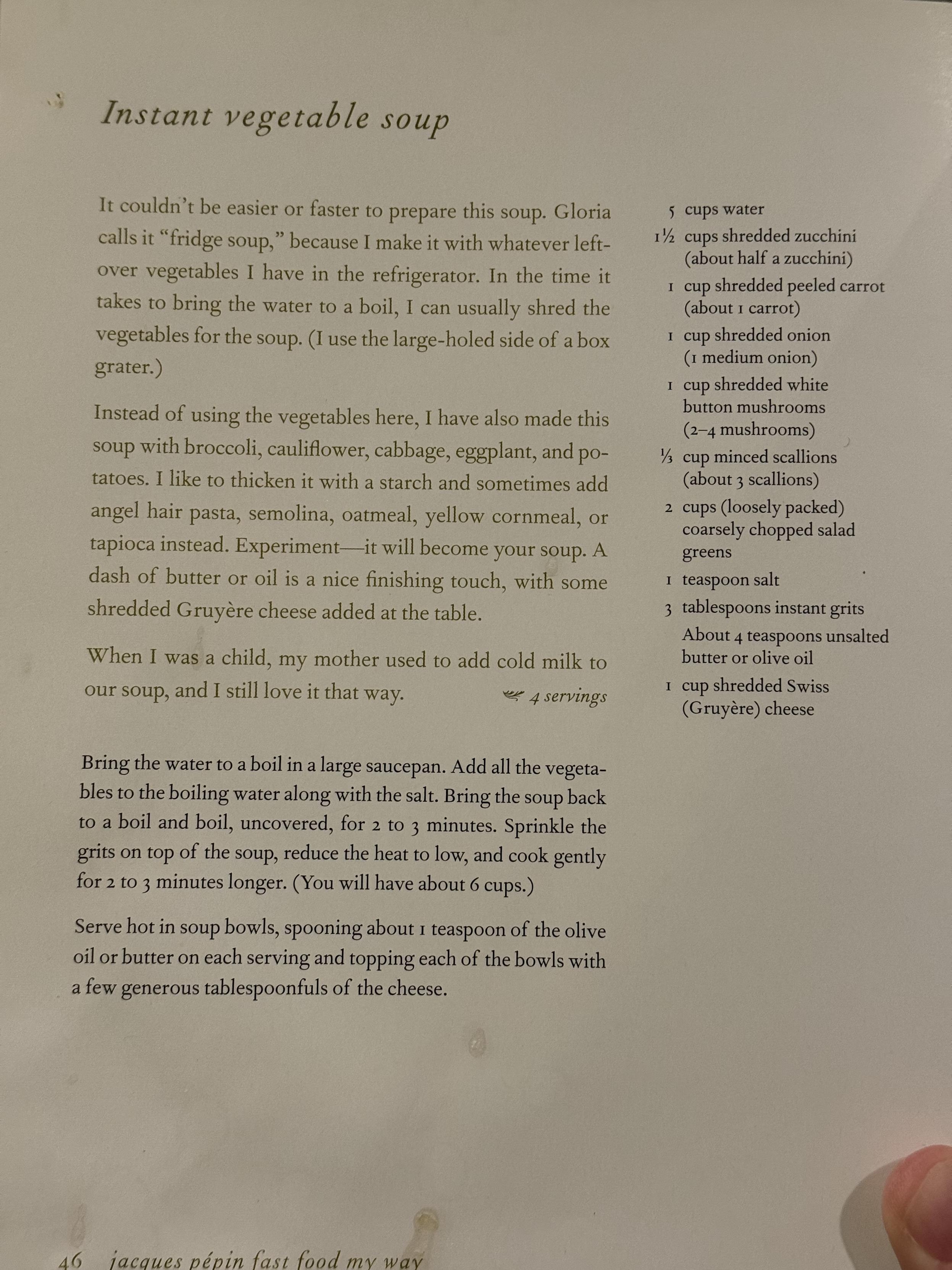 this is a favorite of ours, from Jacques Pepin’s _Fast Food My Way_