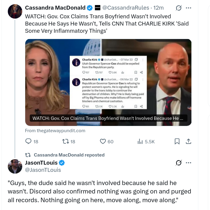 Rage bait. <https://www.thegatewaypundit.com/2025/09/watch-gov-cox-claims-trans-boyfriend-wasnt-involved/> -