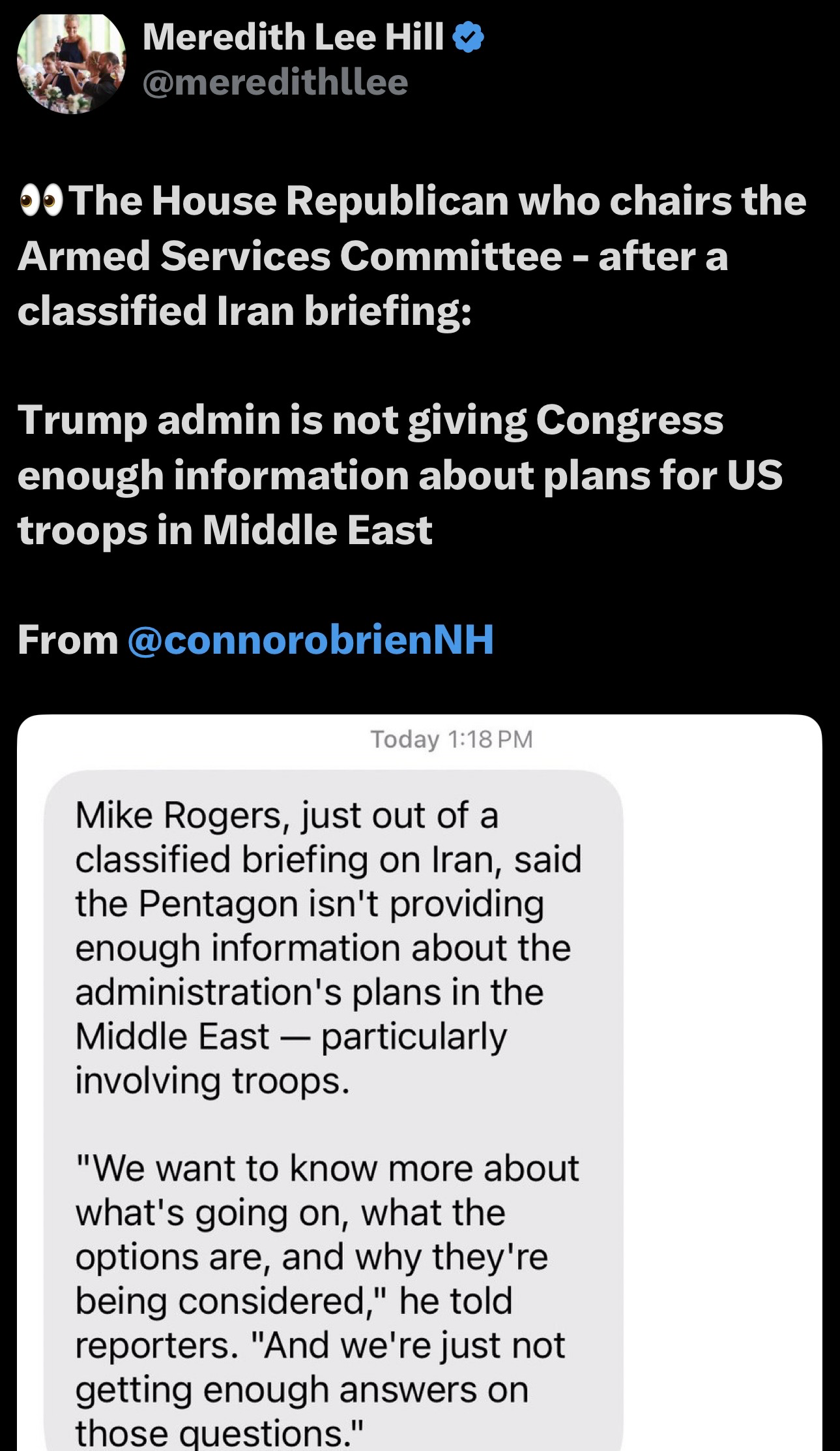 #Trump, #Hegseth... are even keeping GOP Reps in the dark about the details of #EpicFury,:🚨🚨"A top Republican denounced the #DOD Wed for failing to give lawmakers enough info about US MIL ops in #Iran -incl plans for #troops.