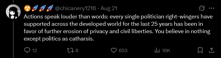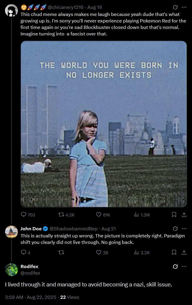 Perfect example of what I'm talking about. It's not that the tranny doesn't understand as the last reply says - he knows, it's just that people like him have chosen to launder tranny politics through chud aesthetics and rhetoric, nonsensically, as a strategy, if only to confuse people.