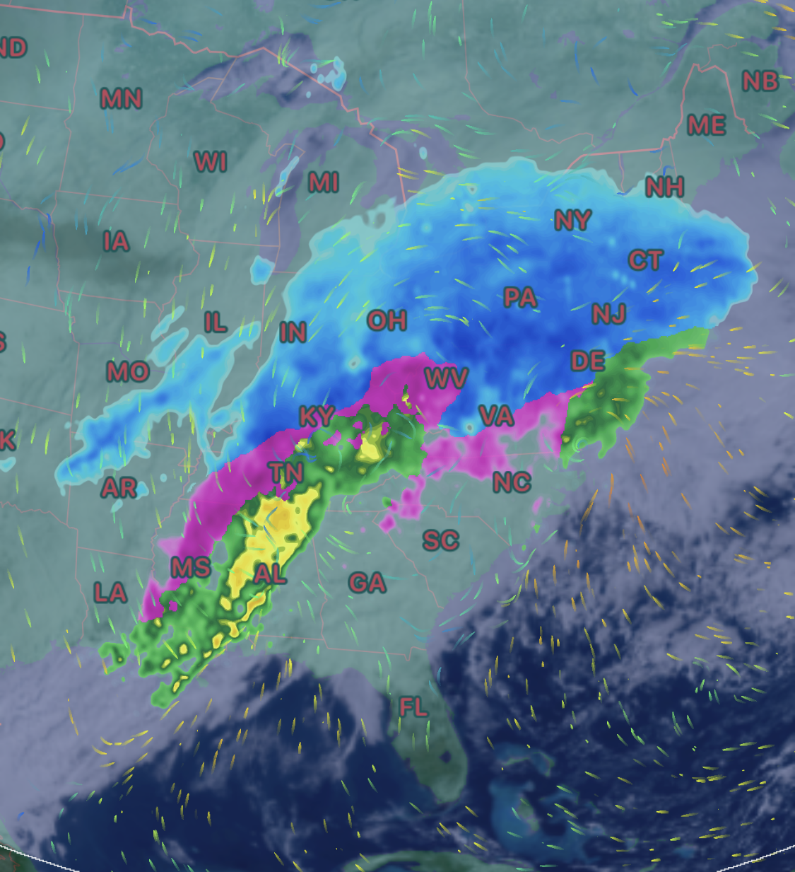 Looks like it is just reaching Maine now.