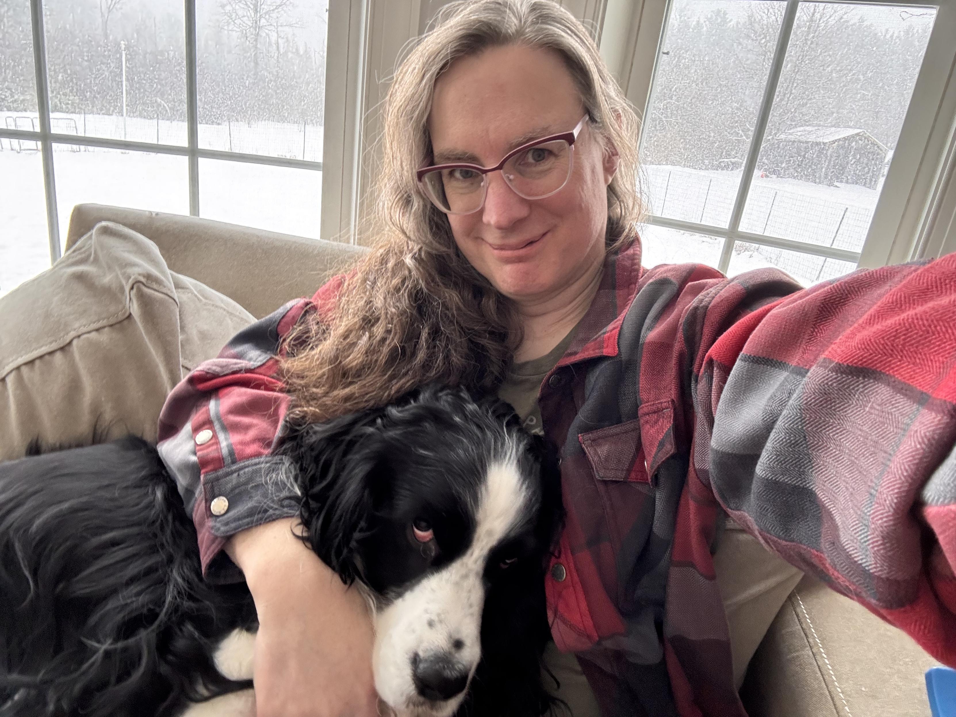 Pupper likes snuggles but doesn’t understand why we’re not going on our post-lunch walk.