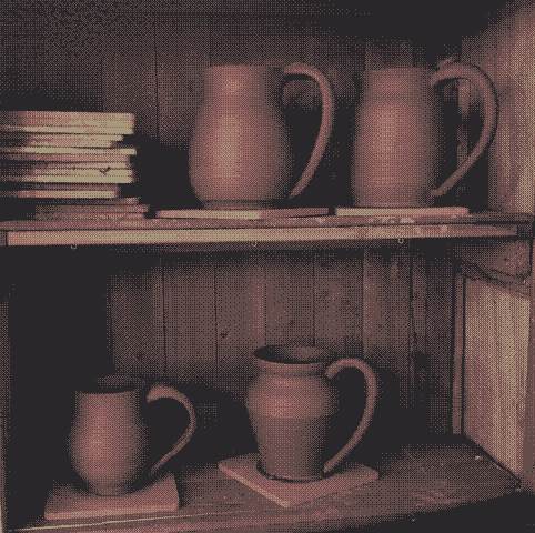 I took the photo with my phone, then cropped it to a 1:1 ratio and ran it through this ImageMagick command: convert in.jpg -resize 640x480 -average -ordered-dither o8x8,6 -colors 4 out.png
