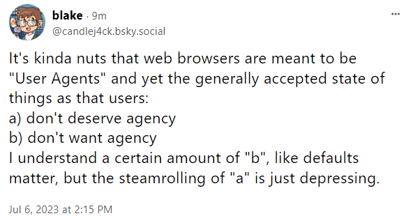 Yes, yes, “there are two kinds of browsers — the ones that people complain about, and the ones nobody uses”. I know.