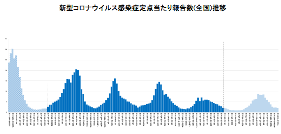 No. of patients per medical facility (nationwide) 2.28 Change from prev. week +0.03 [Source: Health-Labor-Welfare Ministry weekly report] https://www.mhlw.go.jp/content/001591873.pdf 🔸End of 13th wave? Saga at 1.25, Tokyo at 1.33, Akita at 3.36, Hokkaido at 3.89, Okinawa at 1.31, #Niigata at 4.55