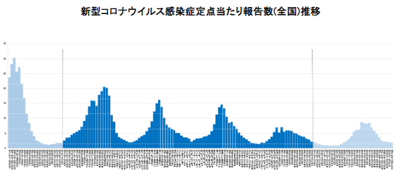 No. of patients per medical facility (nationwide) 1.64 Change from prev. week -0.27 [Source: Health-Labor-Welfare Ministry weekly report] https://www.mhlw.go.jp/content/001600451.pdf 🔸Week 23 of 13th wave Saga at 1.21, Tokyo at 0.8, Akita at 4.28, Hokkaido at 3.54, Okinawa at 0.42, #Niigata at 4.85