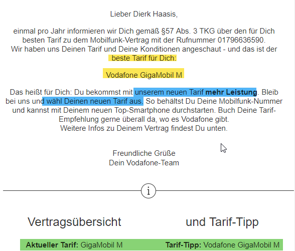 Bekam eine E-Mail, die schon sehr suspekt daher kam [kein richtiger call-to-action, kein Link, komische Formatierung] und auf deren Seiten gibt es keinen Tarifwechsel, nur -verlängerung mit Gerät]. Alles sehr fishy.