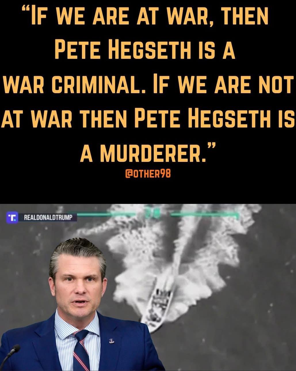 If the US military operation is not an armed conflict of any kind, these orders to kill helpless civilians clinging to the wreckage of a vessel our military destroyed would subject everyone from [the defense secretary] down to the individual who pulled the trigger to prosecution under US law for murder." - Former JAGs Working Group