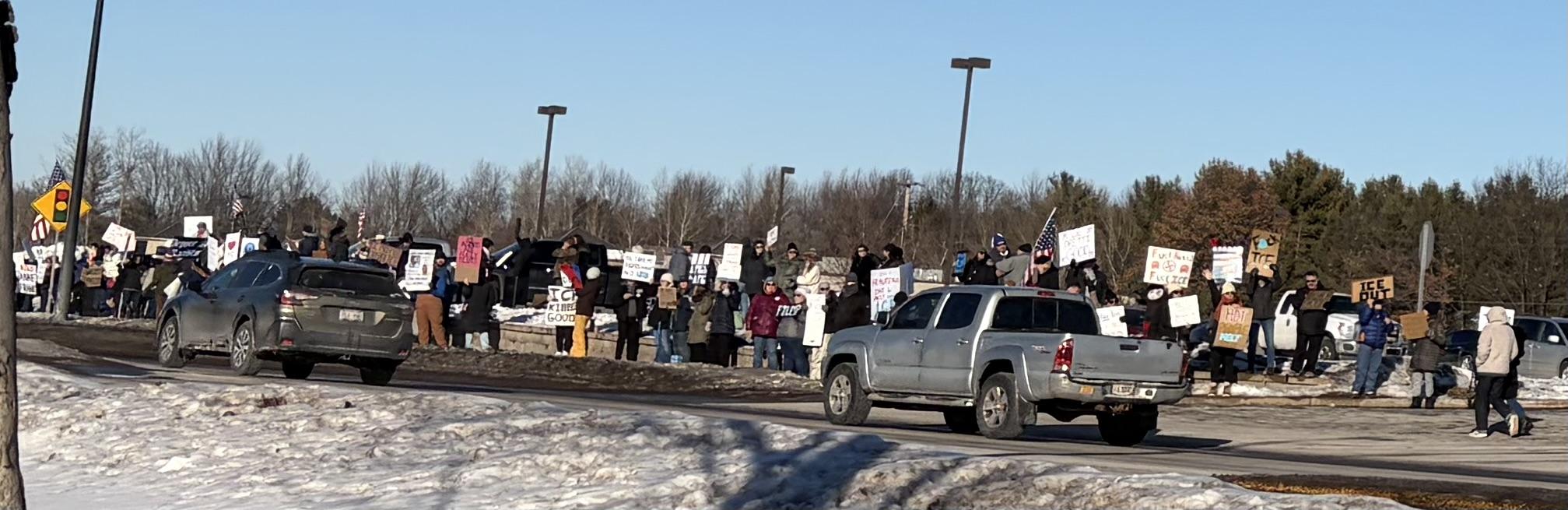 Went to Wausau, Wisconsin, today to take my mom to dinner for what is the 67th wedding anniversary for her and my late father. We went to the Olive Garden on Rib Mountain Drive and along the east side of the street there must have been at least 500 people protesting the tRump regime and ICE. The photos don’t do it justice.