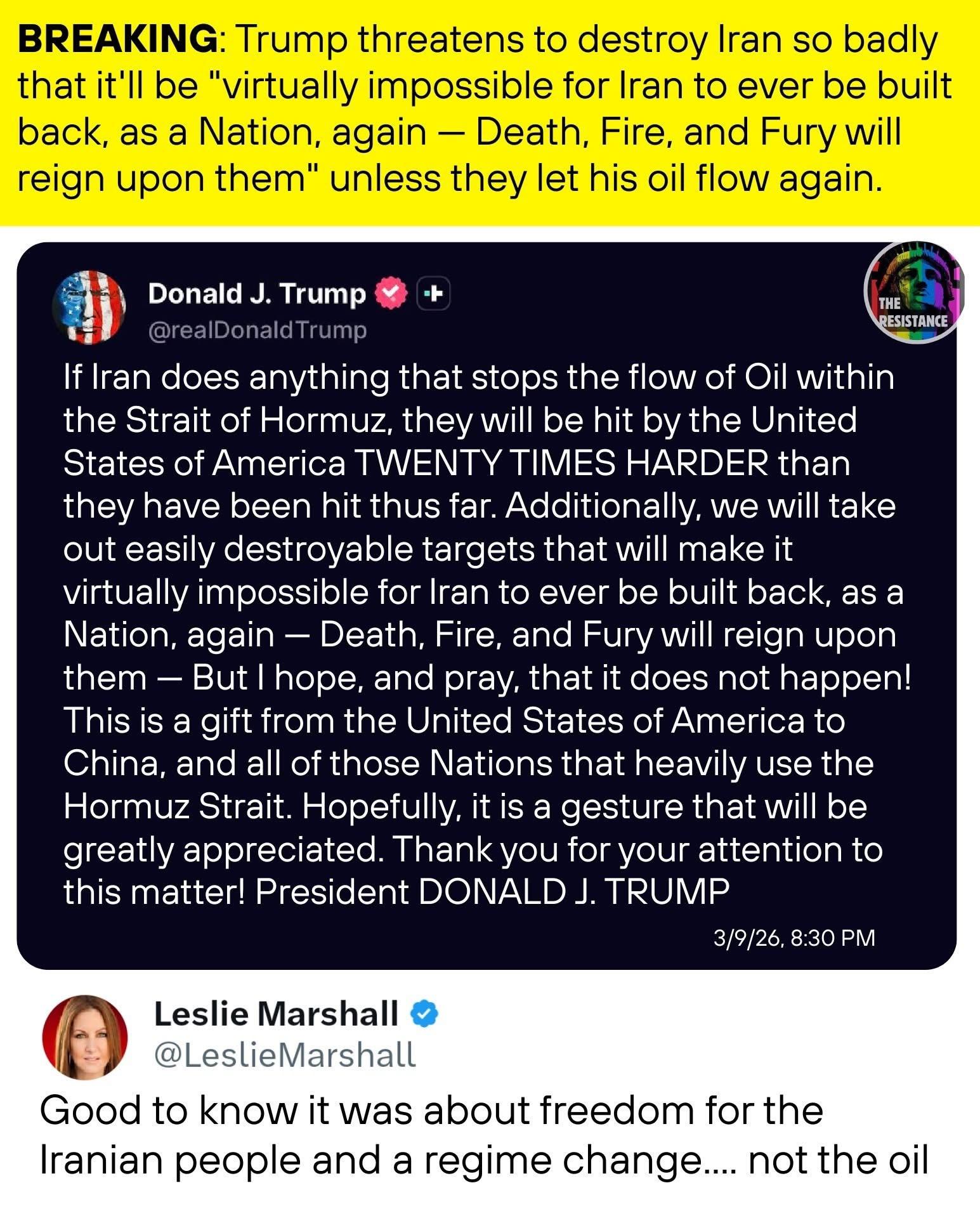 Not a tweet but a post from unTruth Social.