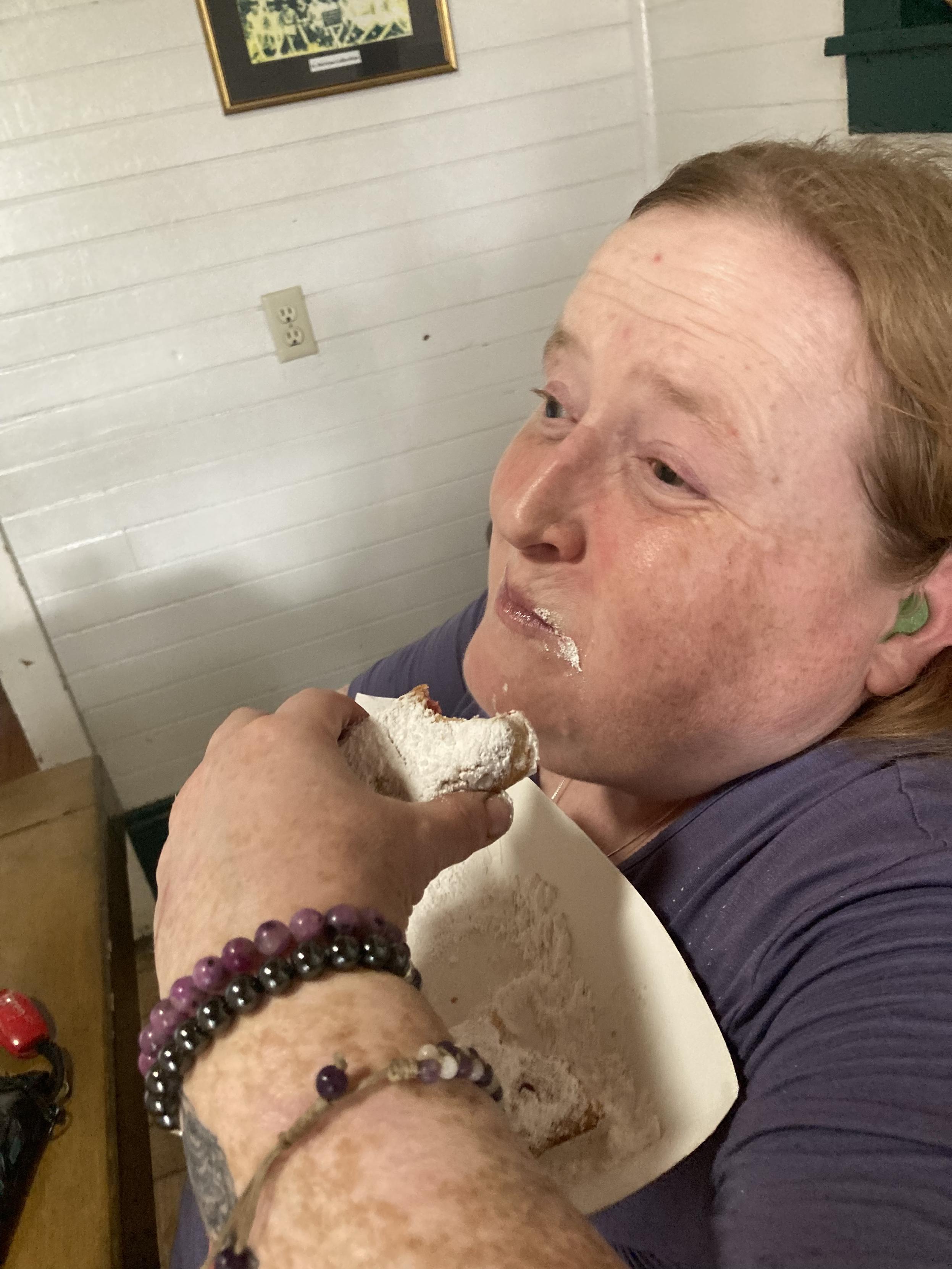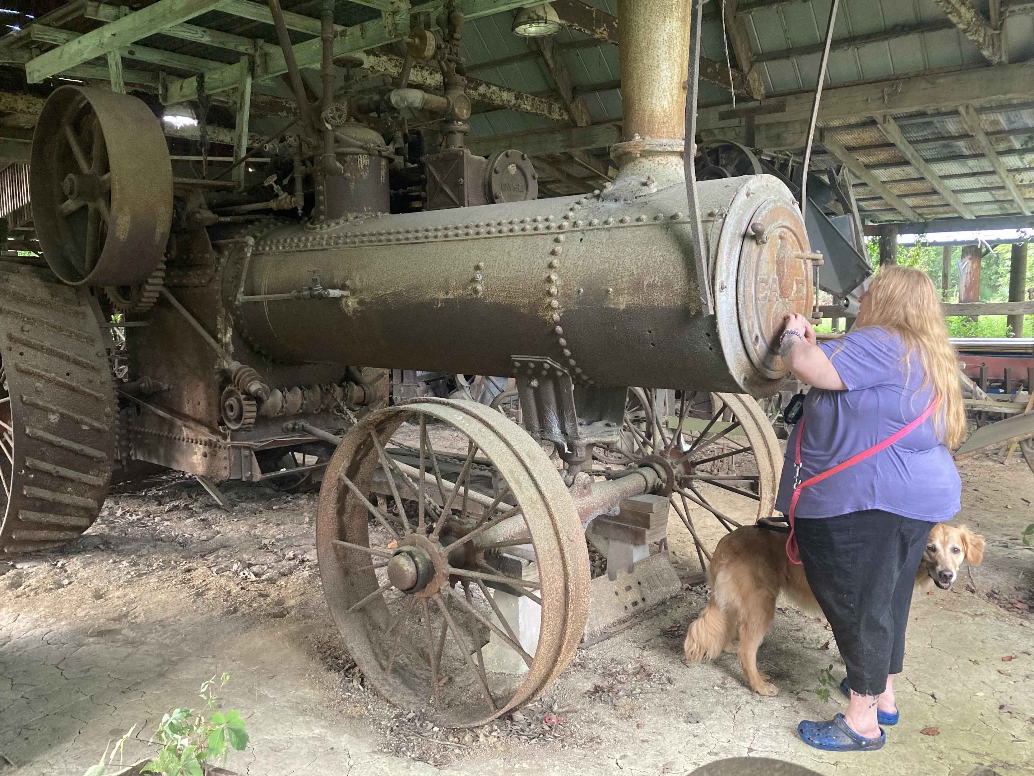 The Deafblind adventure continues! It started raining and the walkways at this place are all slippery wood. With the occasional Cyprus root sticking out for fun and novelty! Phoenix is earning her bones! The air is basically water! My crocs and feet are covered with mud, and my clothes are stuck to my sweaty skin. But I had so much fun climbing around and feeling old tools! Plus the food! And now that I've filled my water bottle with delicious, fresh made iced tea, we're heading back to NOLA!
