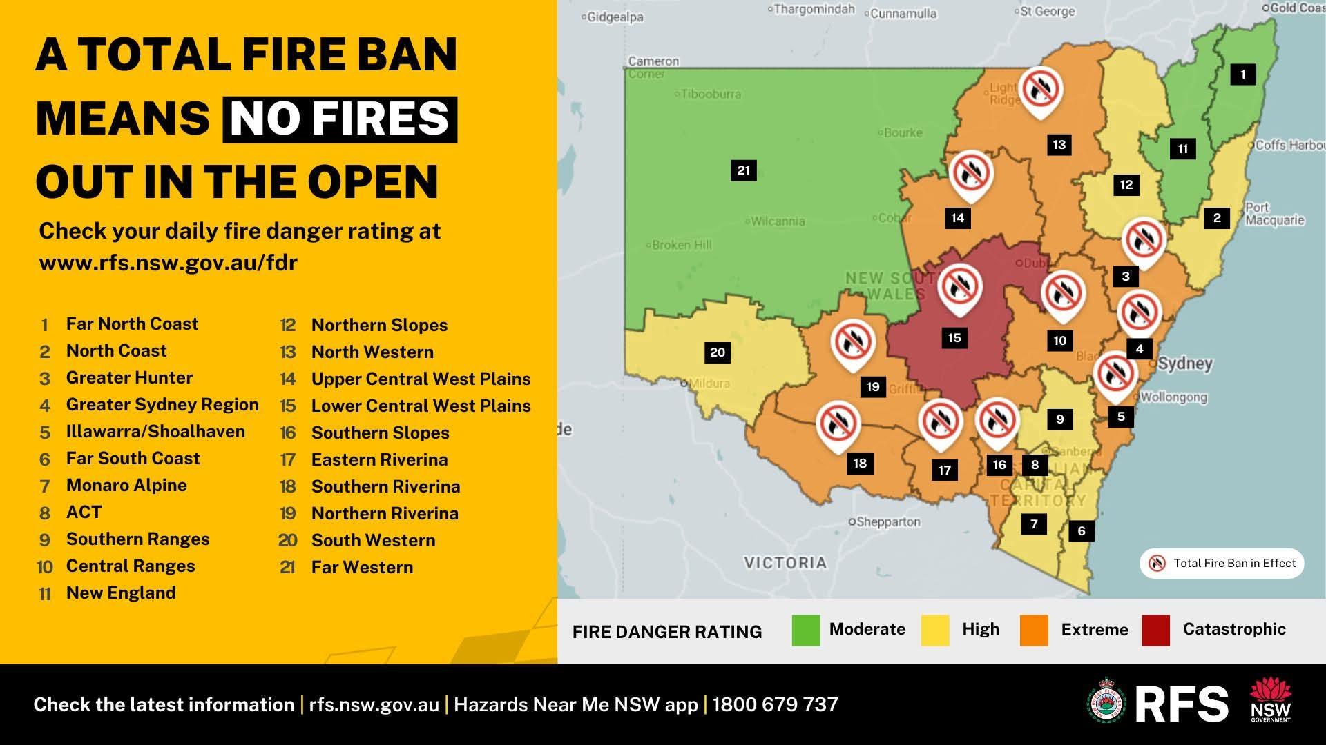 For more information on Total Fire Ban rules, visit the #RFS website: www.rfs.nsw.gov.au/fdr (RFS FB)