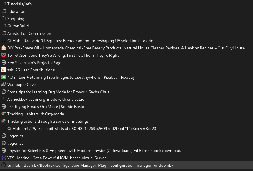 @kaia My bookmarks are fairly tame aside from the long list of unsorted bookmarks that aren't in the correct folders.