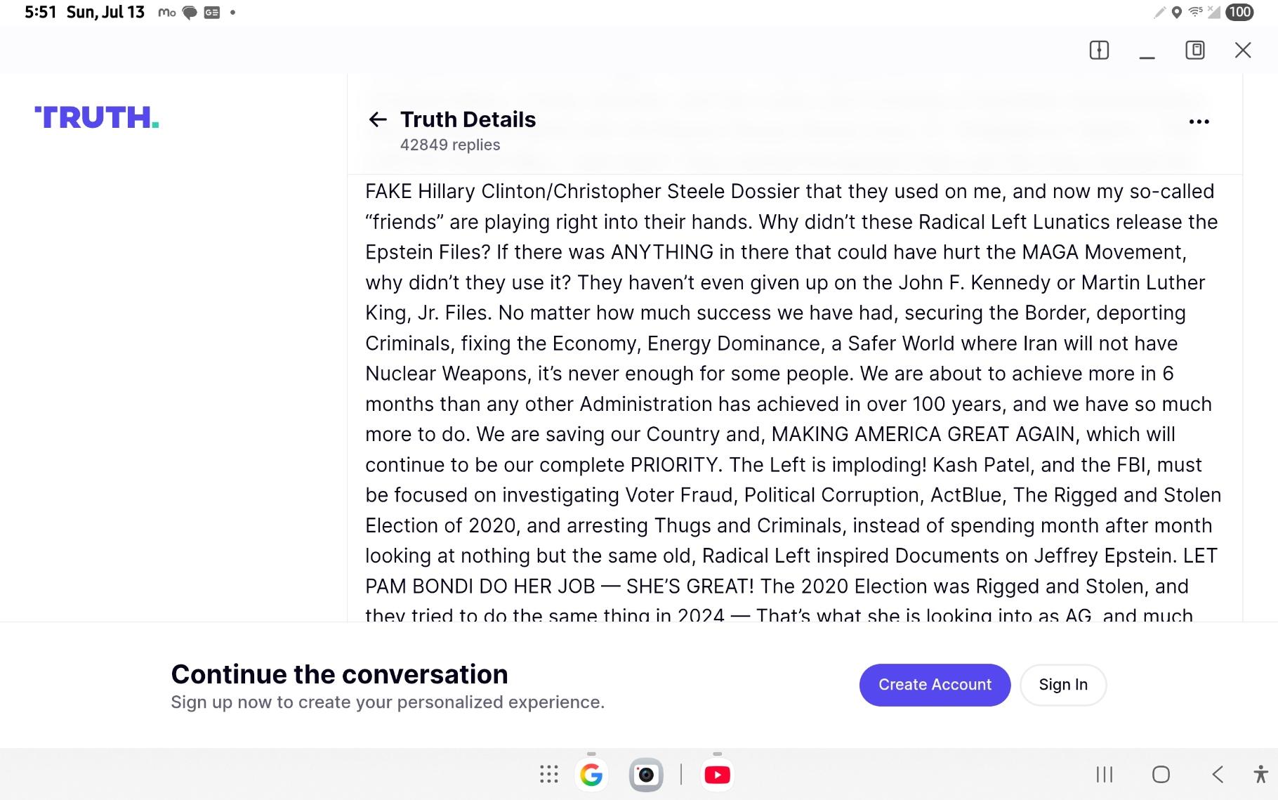 "Trump, telling #America he's bombed #IRAN. And tells us mere citizens via TruthSocial, the platform he owns. From the article: