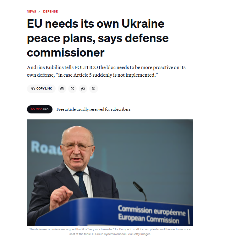 EU Defense Commissioner Andrius Kubilius says Europe must plan for the possibility that NATO’s Article 5 might “not work” when needed. With the U.S. pivoting to the Pacific and signaling it wants Europe to take more responsibility, Kubilius stresses the need for backup security guarantees and institutional readiness just in case.